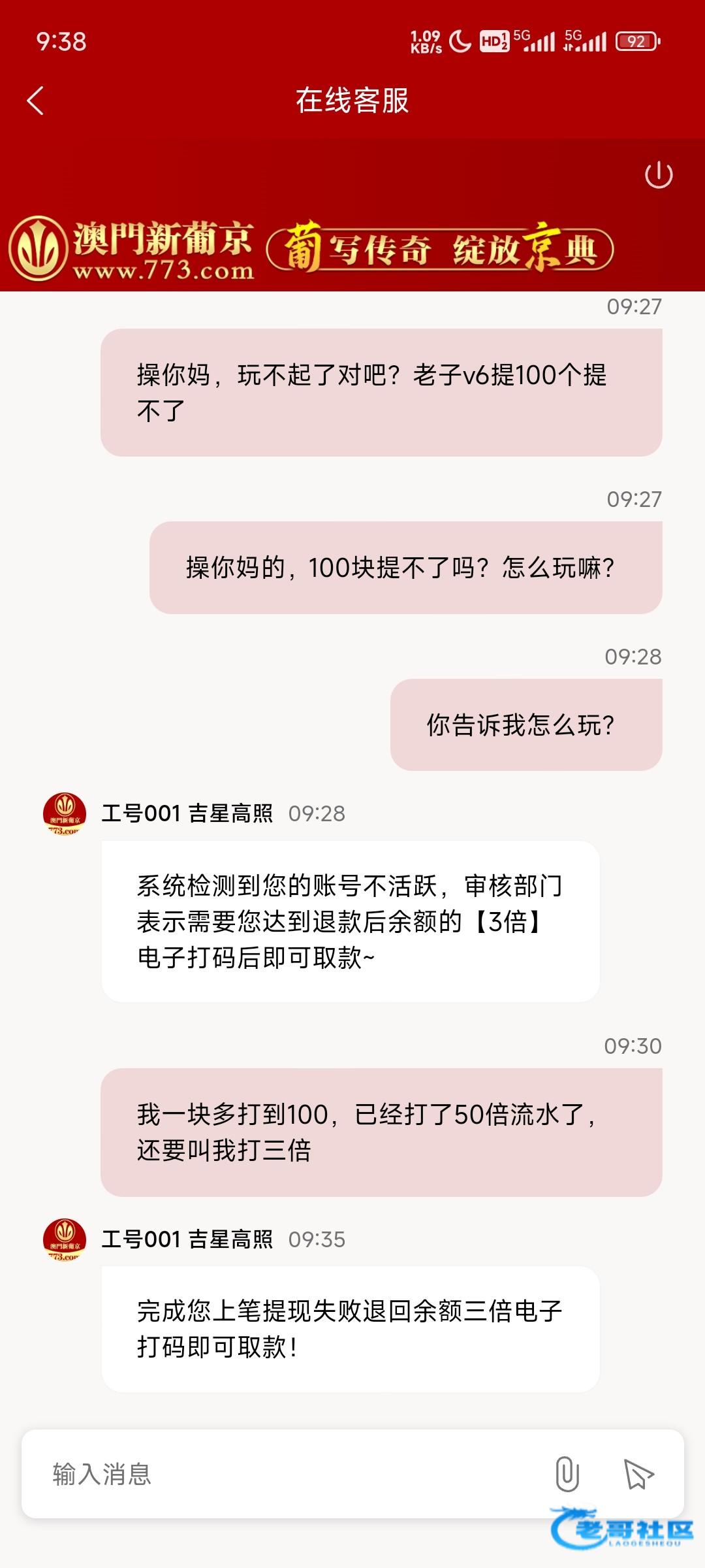 一块都打到100V6提个100提不了,罚300多倍流水