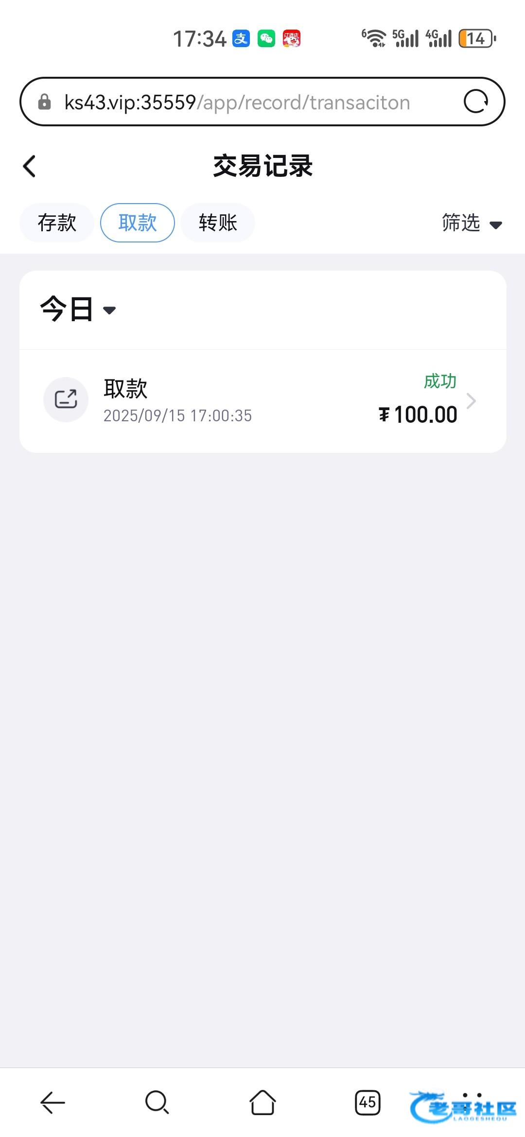 提现到了
