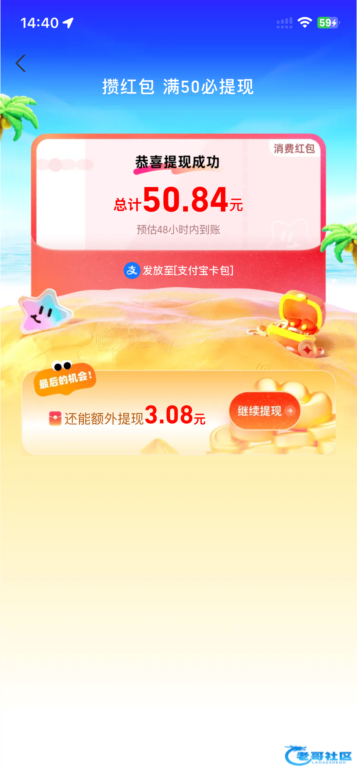 @qq9159 ,你不是提现成功了吗,你看看卡包