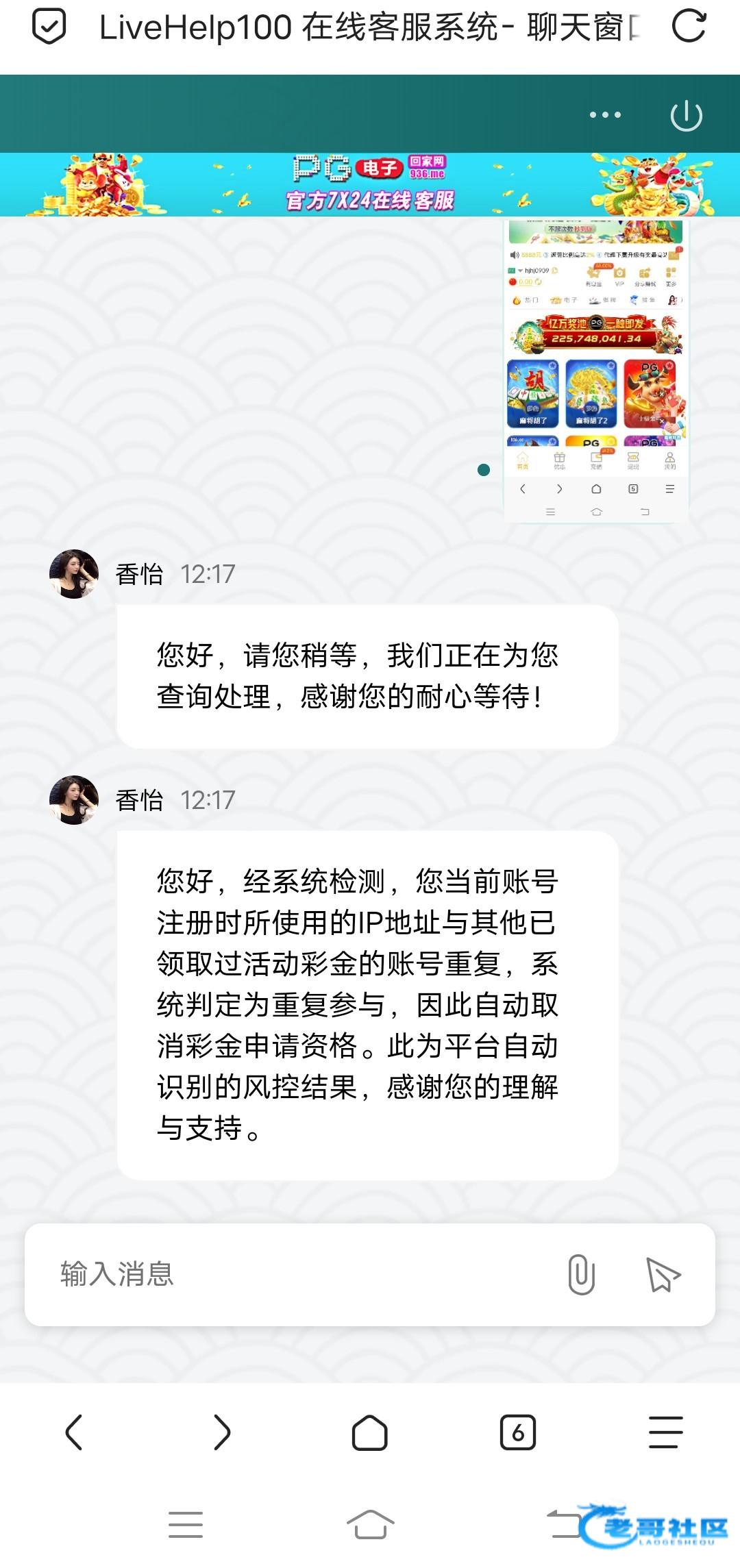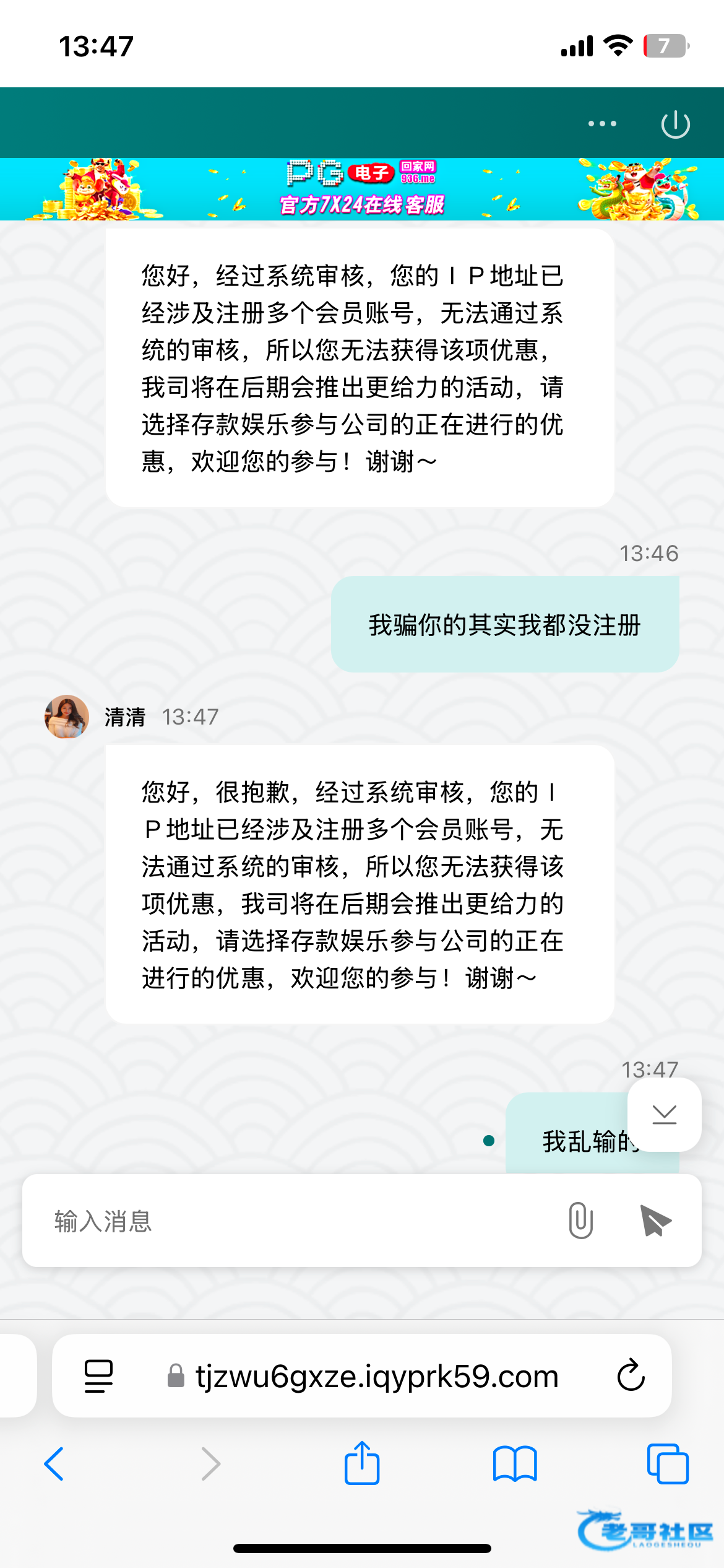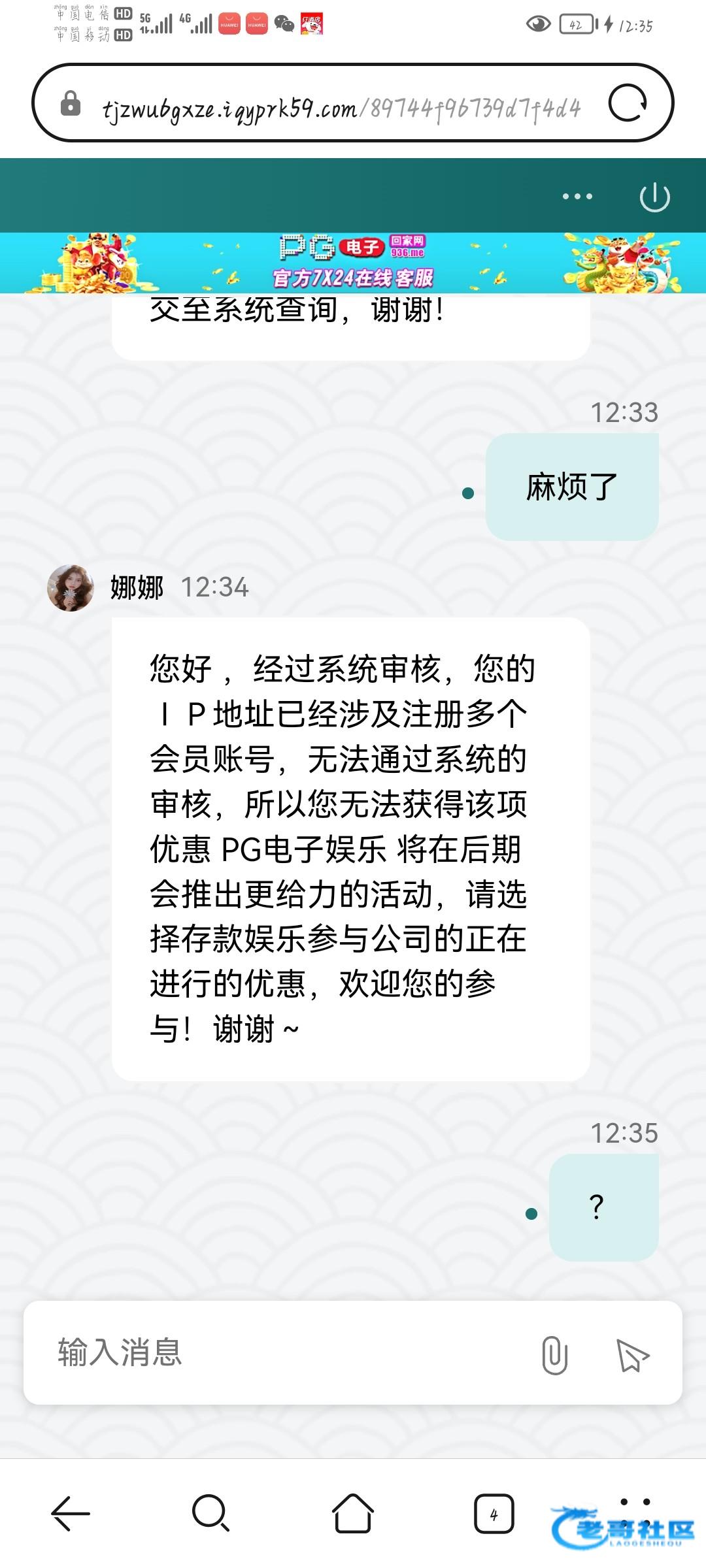 娜娜12:17您好,请稍等,正在为您提交至系统查询,谢谢!娜娜12:17您好 ,经过系统审核,您的IP地址已经涉及注册多个会员账号,无法通过系统的审核,所以您无法获得该项优惠 PG电子娱乐 将在后期会推出更给力的活动,请选择存款娱乐参与公司的正在进行的优惠,欢迎您的参与!谢谢~不用去了 秒回复 秒拒的