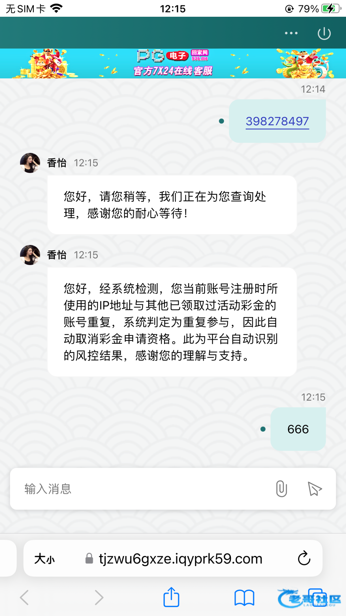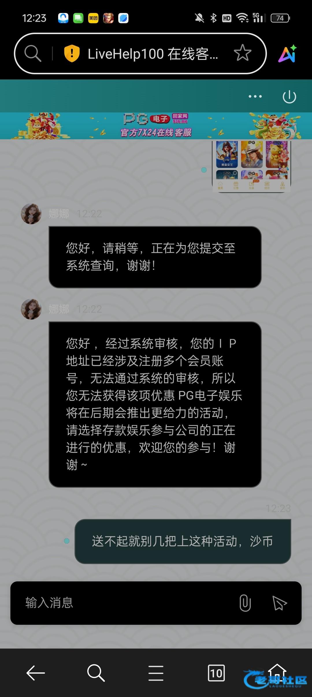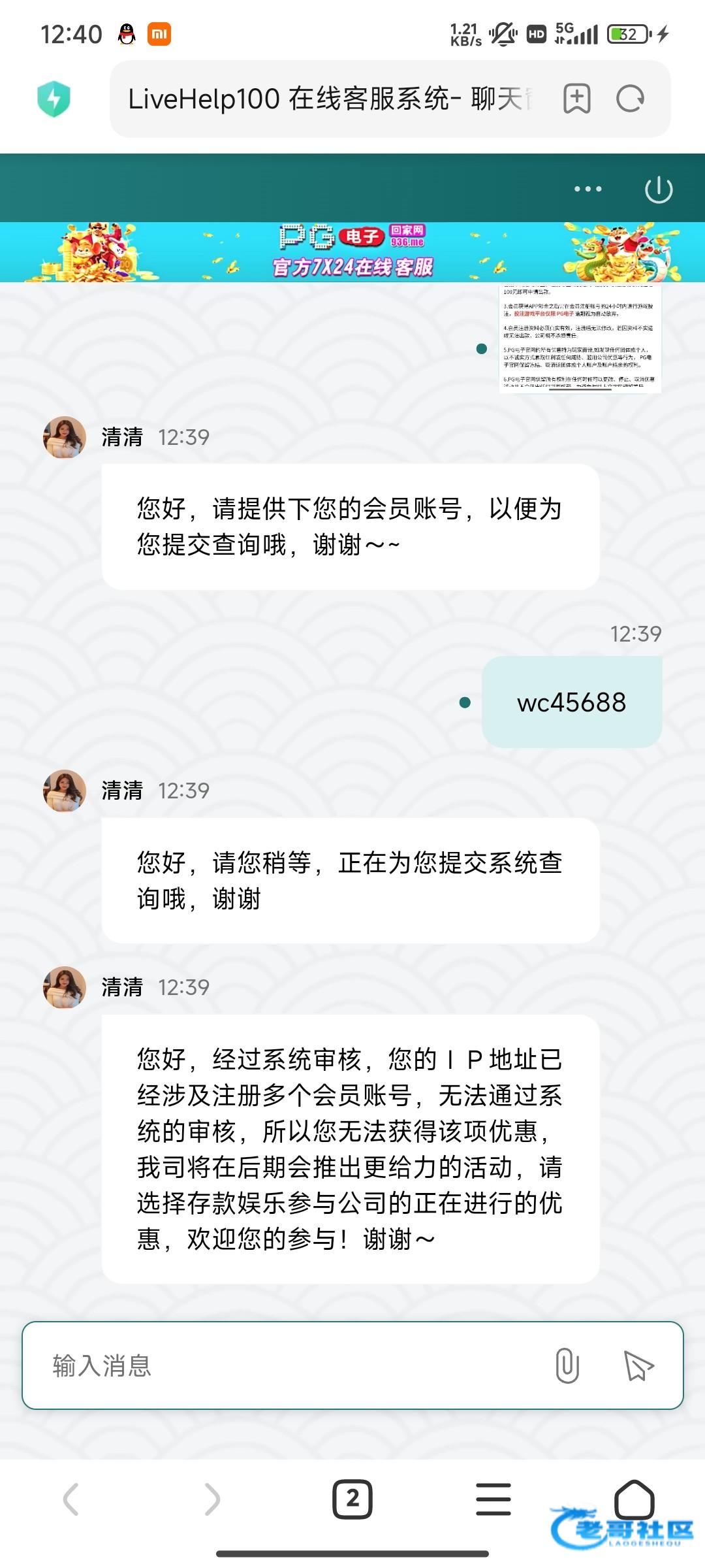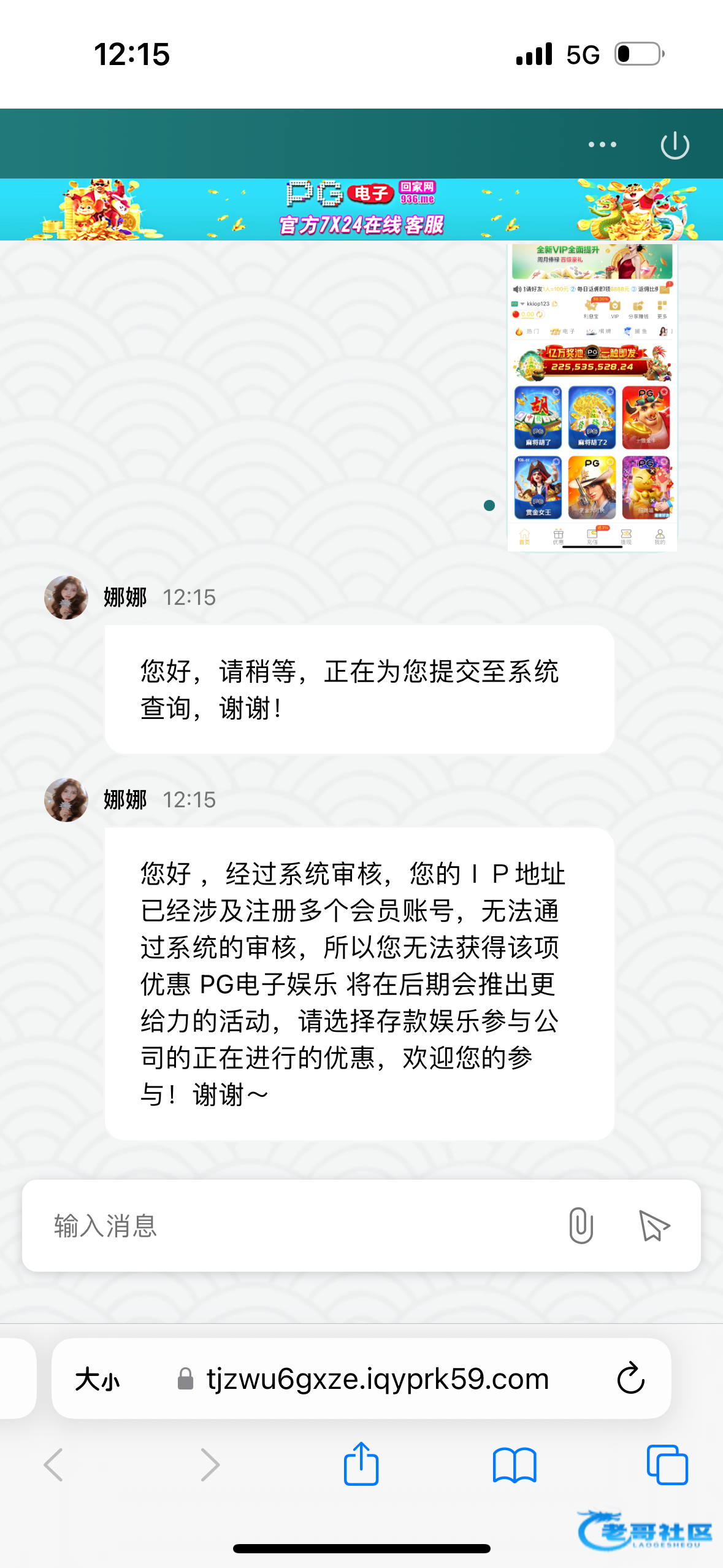 娜娜12:17您好,请稍等,正在为您提交至系统查询,谢谢!娜娜12:17您好 ,经过系统审核,您的IP地址已经涉及注册多个会员账号,无法通过系统的审核,所以您无法获得该项优惠 PG电子娱乐 将在后期会推出更给力的活动,请选择存款娱乐参与公司的正在进行的优惠,欢迎您的参与!谢谢~不用去了 秒回复 秒拒的