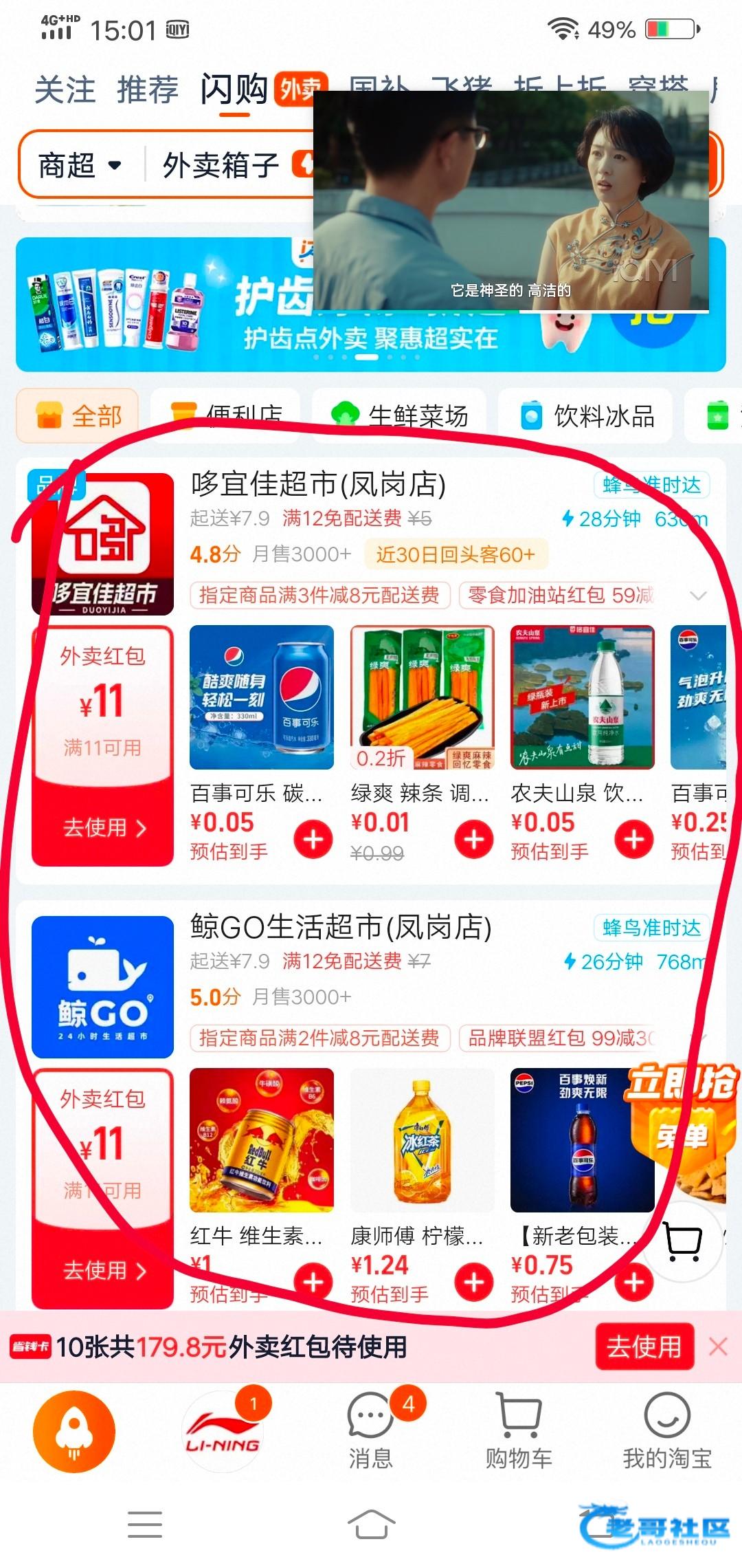 自己淘宝app打开看一下秒送超市有没有几块钱起送,然后看一下有没有商超果蔬红包,应该部分人有两张,一张11,一张12,然后达到减配送费的,花两三块就能白嫖,有钱的无视,挂壁兄弟看一下,仅仅发出来交流,不混帖子