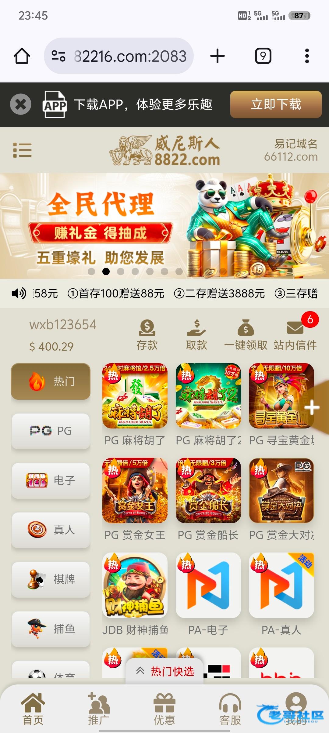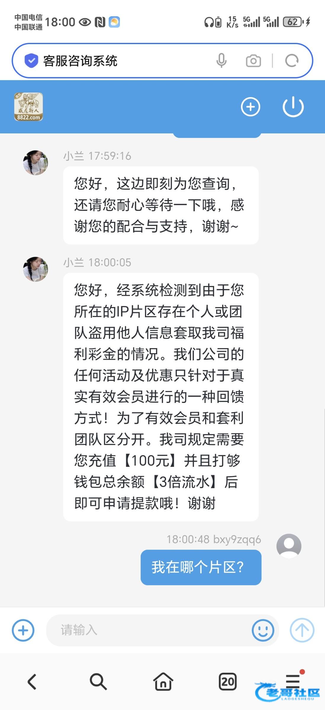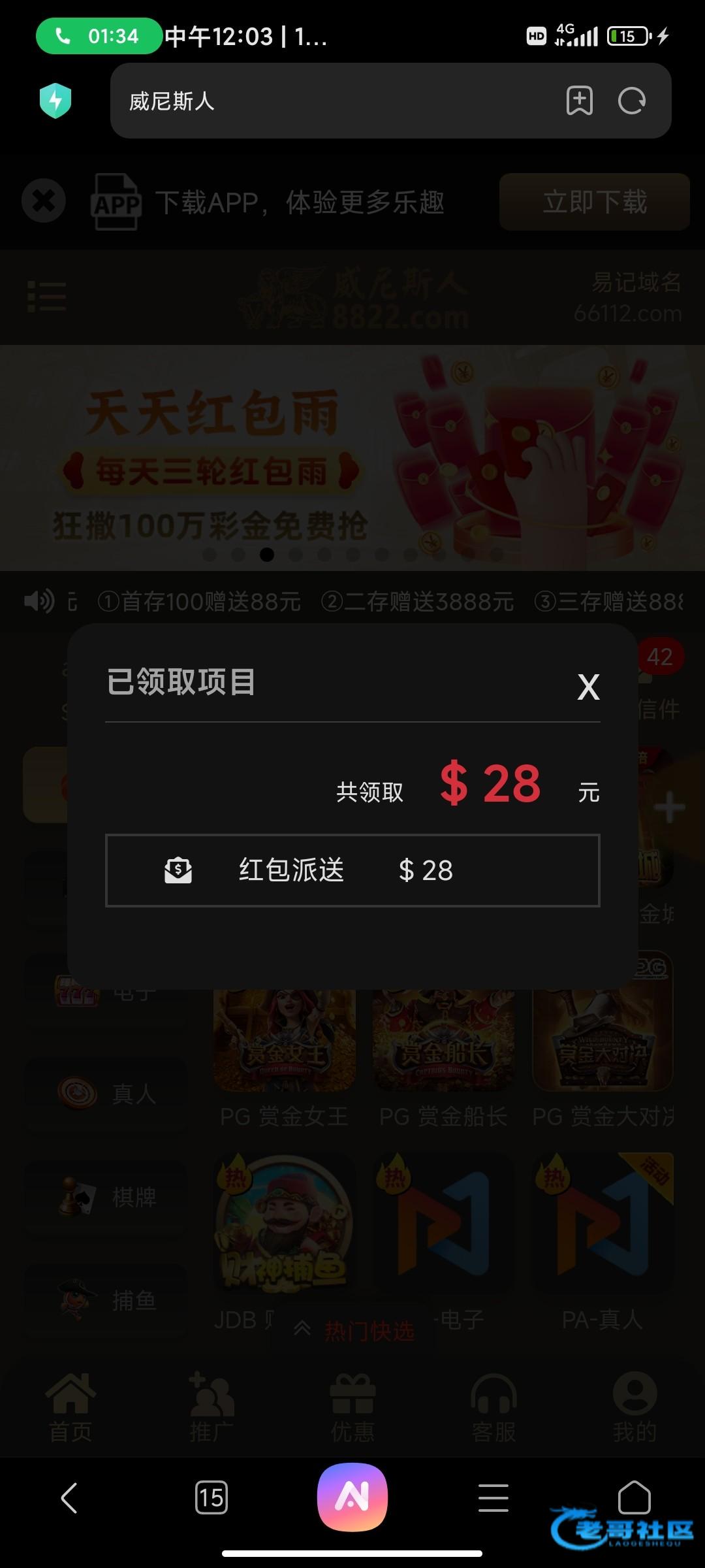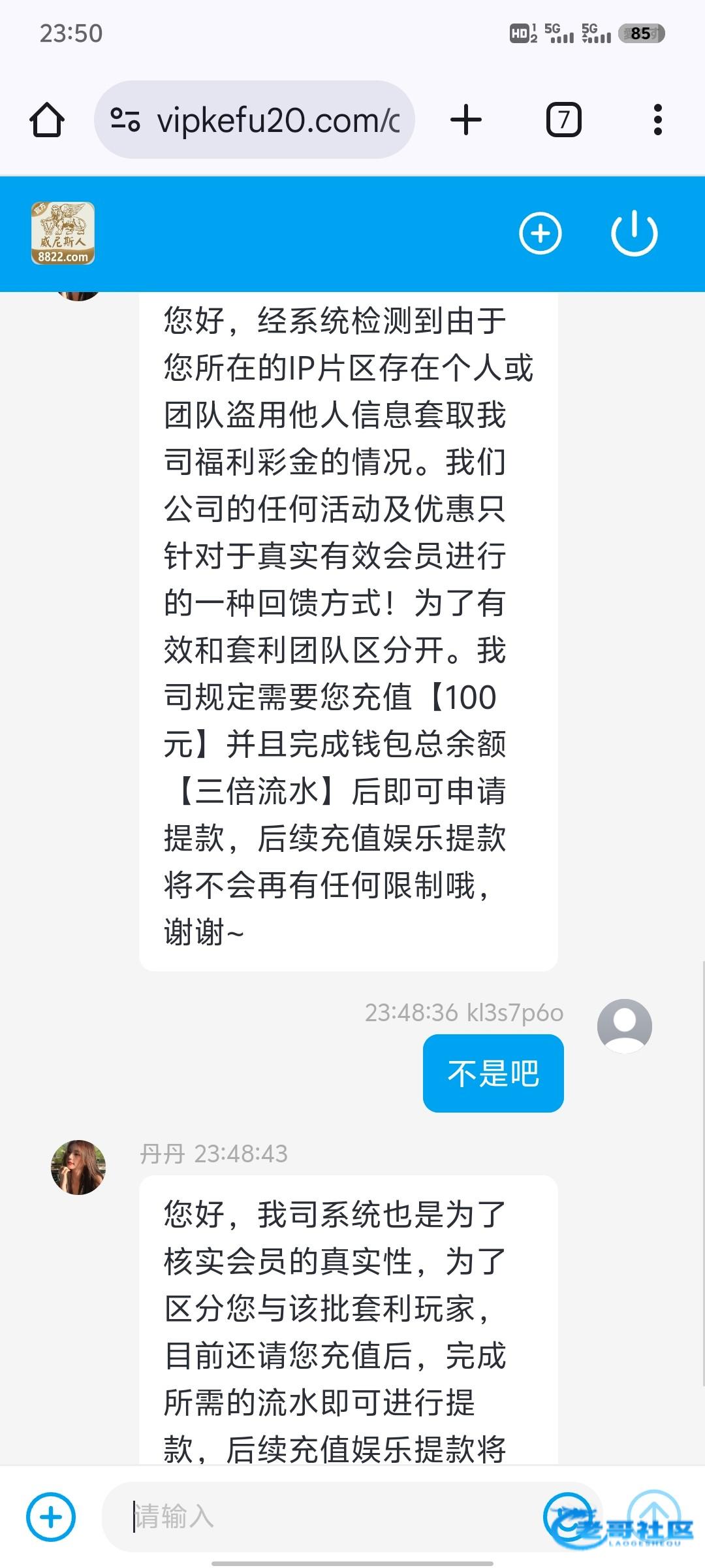 老哥网最倒霉之人 ▶ wxb12345 可以 充值100 三倍流水 最高提款188 多余清零 4月前
