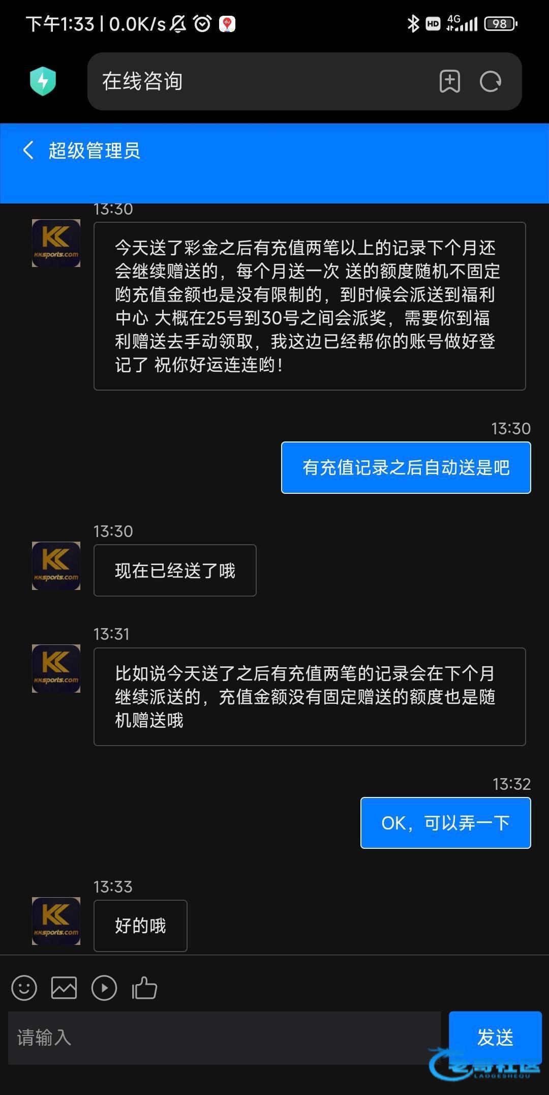 之前送三块打到100,这次打电话送了88打不上来 最好是有充值记录的上去看看,没有就无视 网址https://app.kkty5571.com/#/home