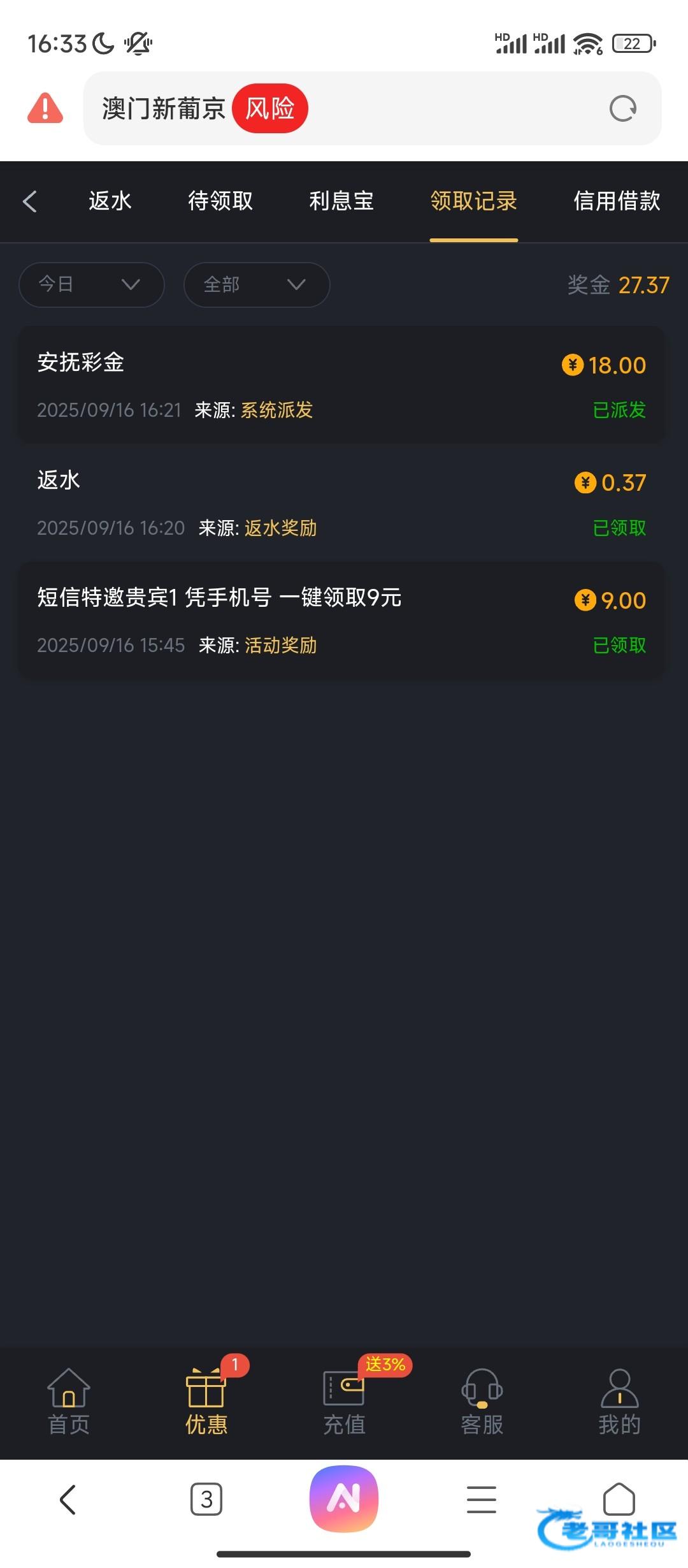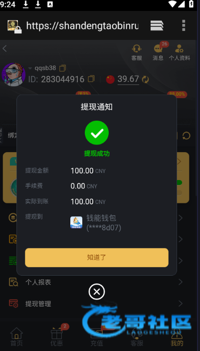 充了19块领了18块app彩金,提200账号冻结。黑台