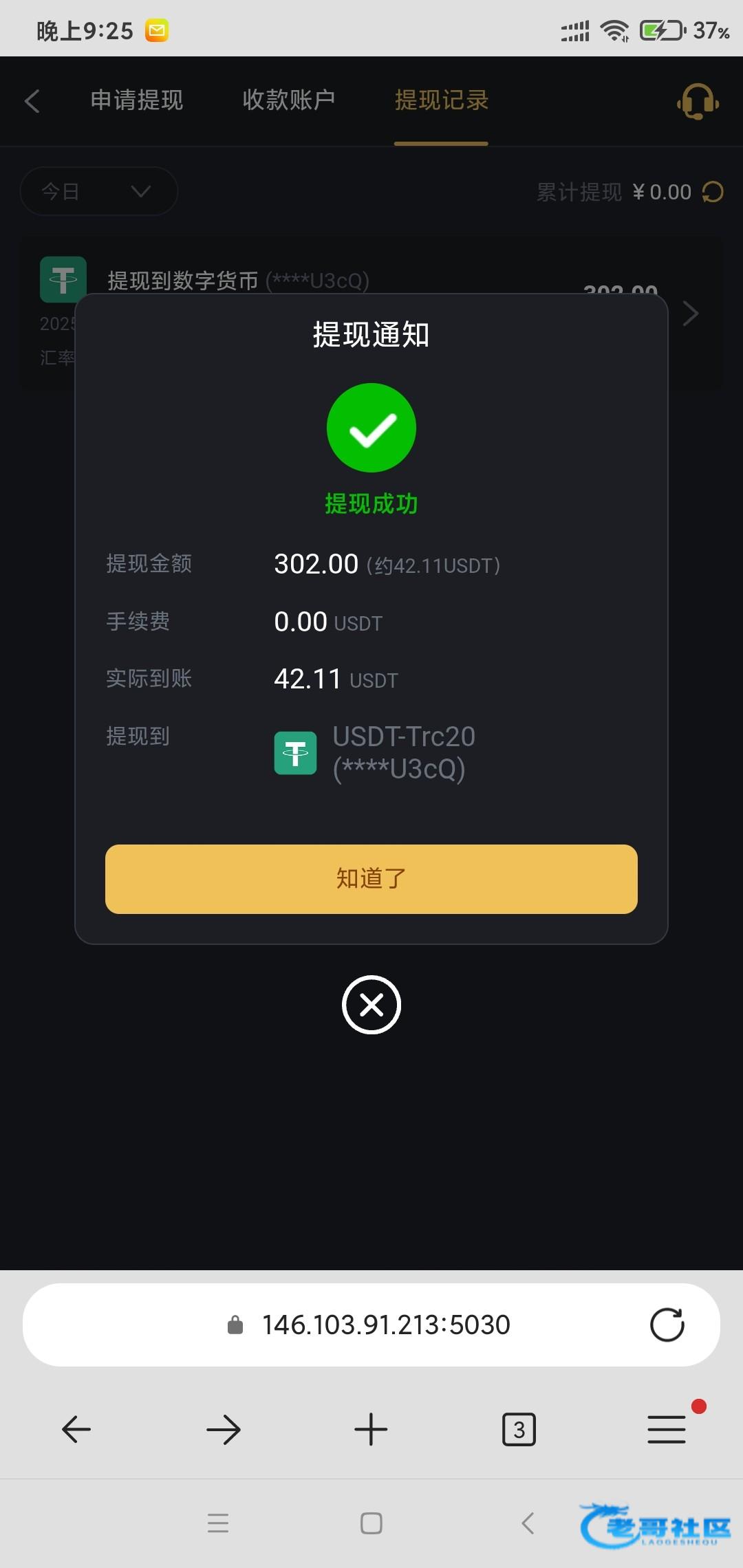 到账了