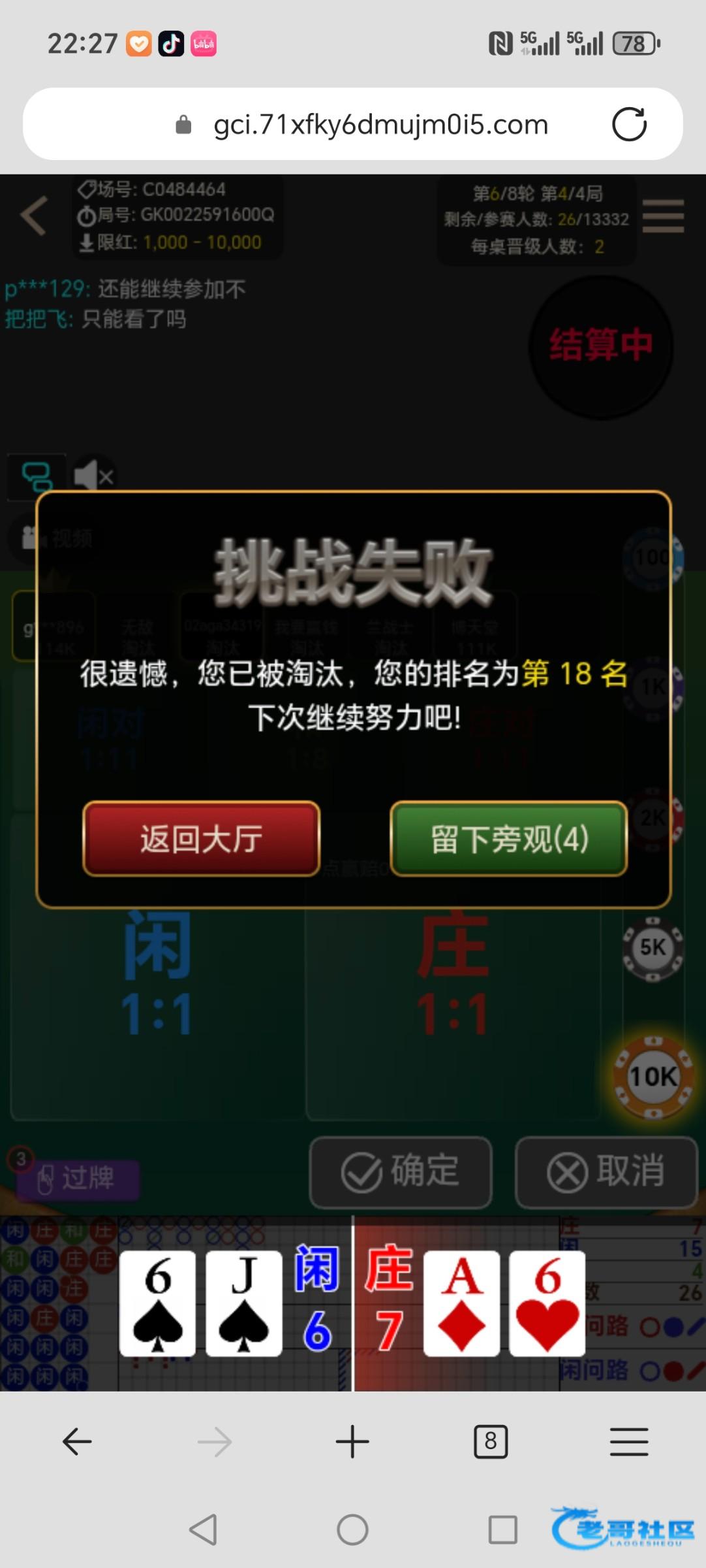 前面几轮全中,只要能中两把就行基本稳进,可惜这一轮下错一把没稳住啊,最后一把但凡有个对子我也进了