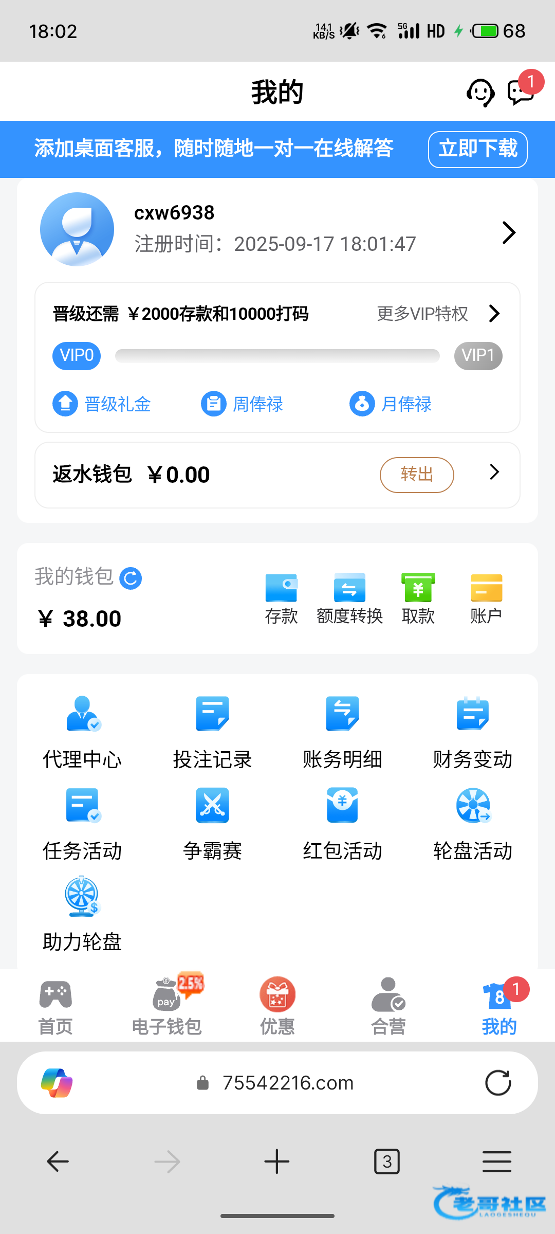 电话注册送了38,兄弟们可以去试试。38我没打出来自己去充了100送88的打出来了。送了38打到388流水下载APP,充10块还再送58。网站 https://75542216.com