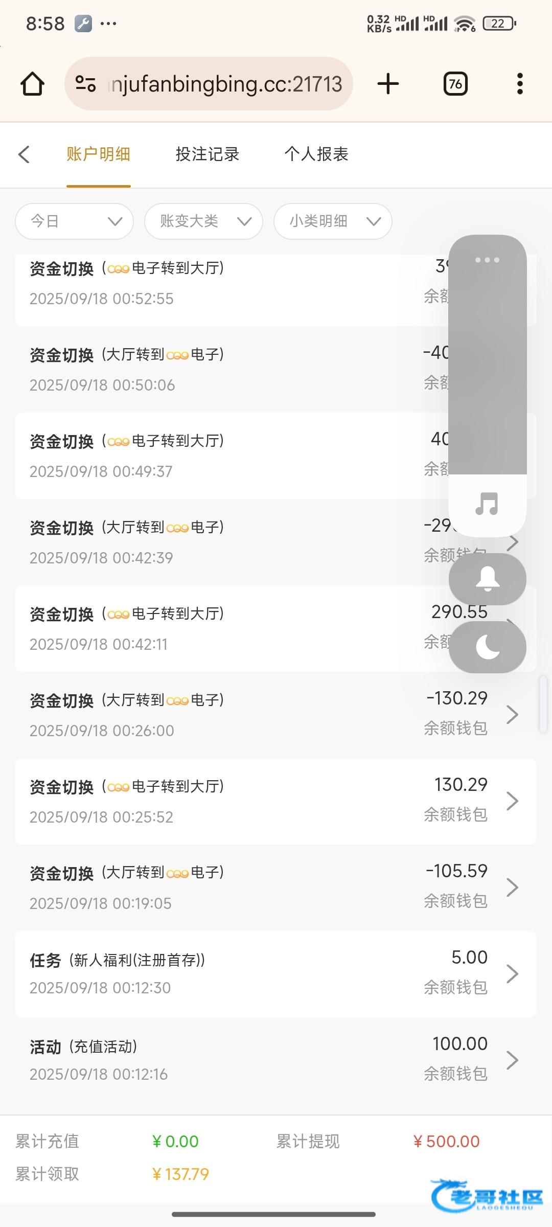 充100输了,凌晨送了100,打了500得吃