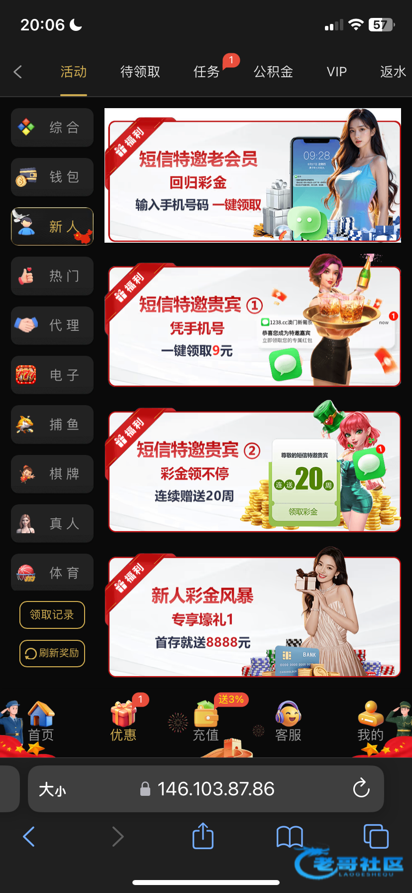 前几天有人发过,不是特邀,充值了10块钱,今天去领到了18+9,没打出来不知道黑不黑,白嫖勿充值。1238.cc