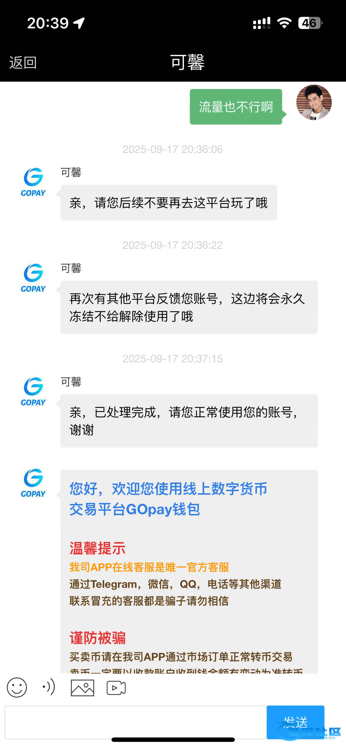 前一段时间不是有人发这个白嫖项目吗 我当时提了290 然后有的老哥被黑了 今天我早上提200到gopay 然后出售到了晚上结果发现出售不了 客服说让我找平台 她们给我说你发提现截图到那个项目评论区了 还说你们老哥社区全是狗 骂我是白嫖狗 后来我找客服软磨硬泡 加上找常玩的平台 给我解开了 当时撸过那个项目的老哥注意了! 当时用什么钱包提现的 去看看你的钱包还可以正常使用不 以免发生提进去结果钱包被这个狗平台封了 go钱包客服都说以后不要去这种台子玩了!