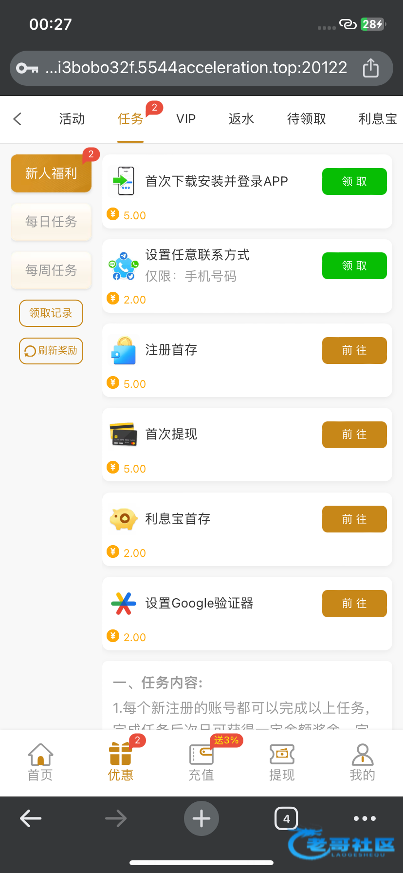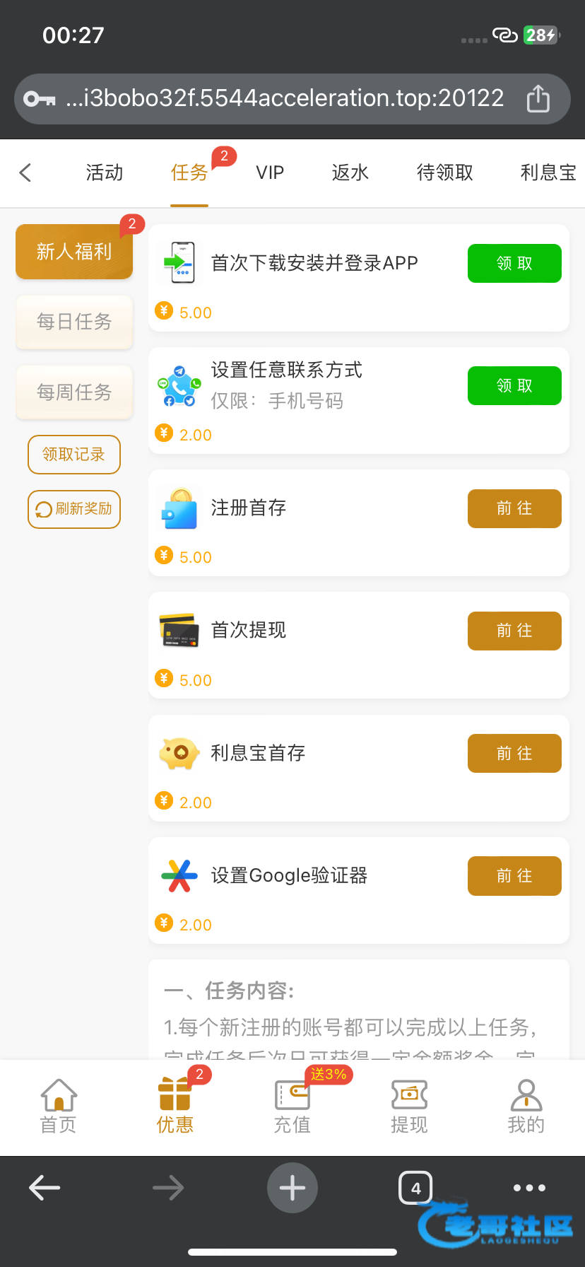 新葡京5544 完善任务得9块 5544.cc 下载app得5 绑定手机号得2 验证谷歌得2