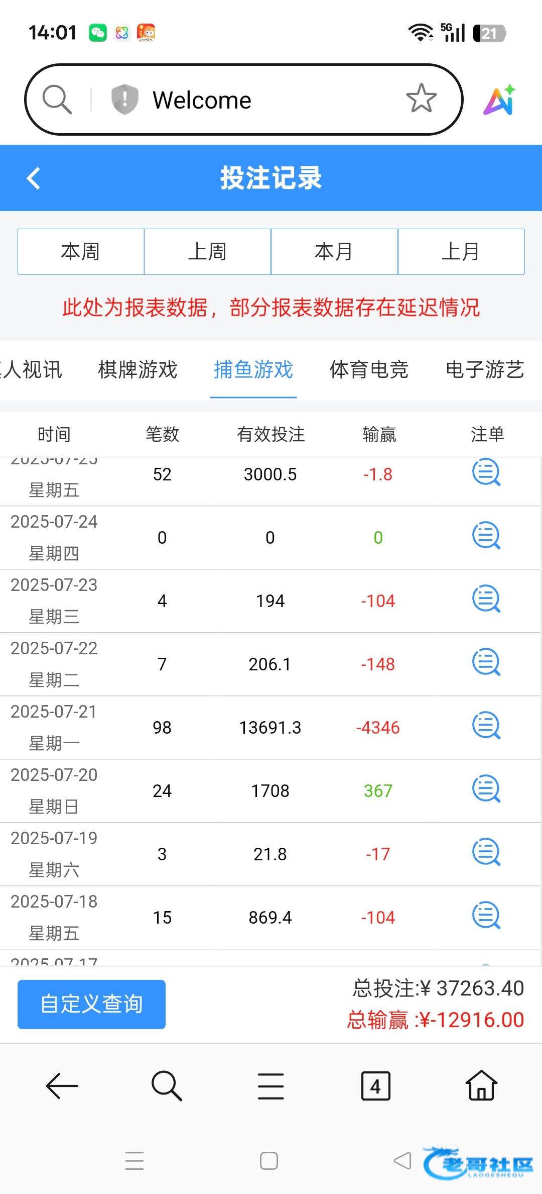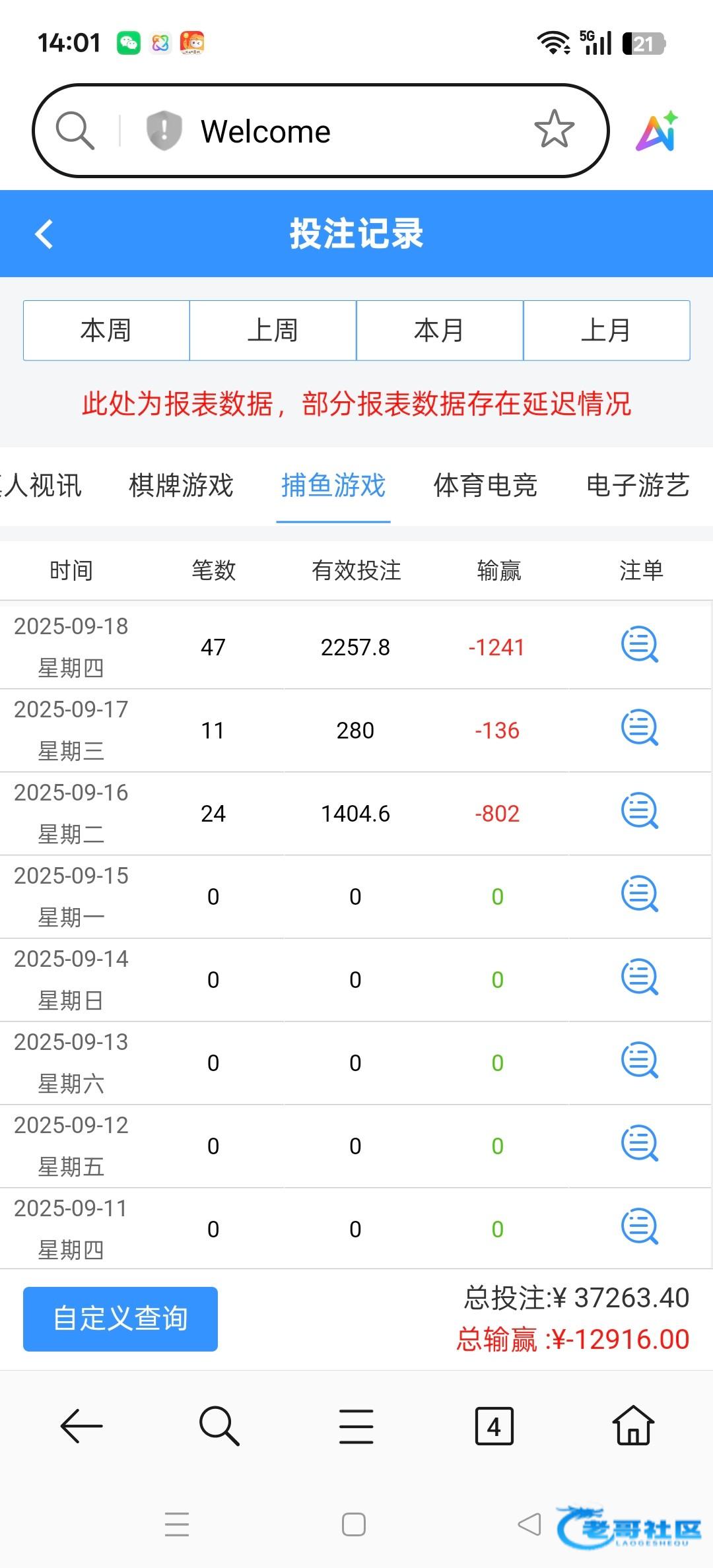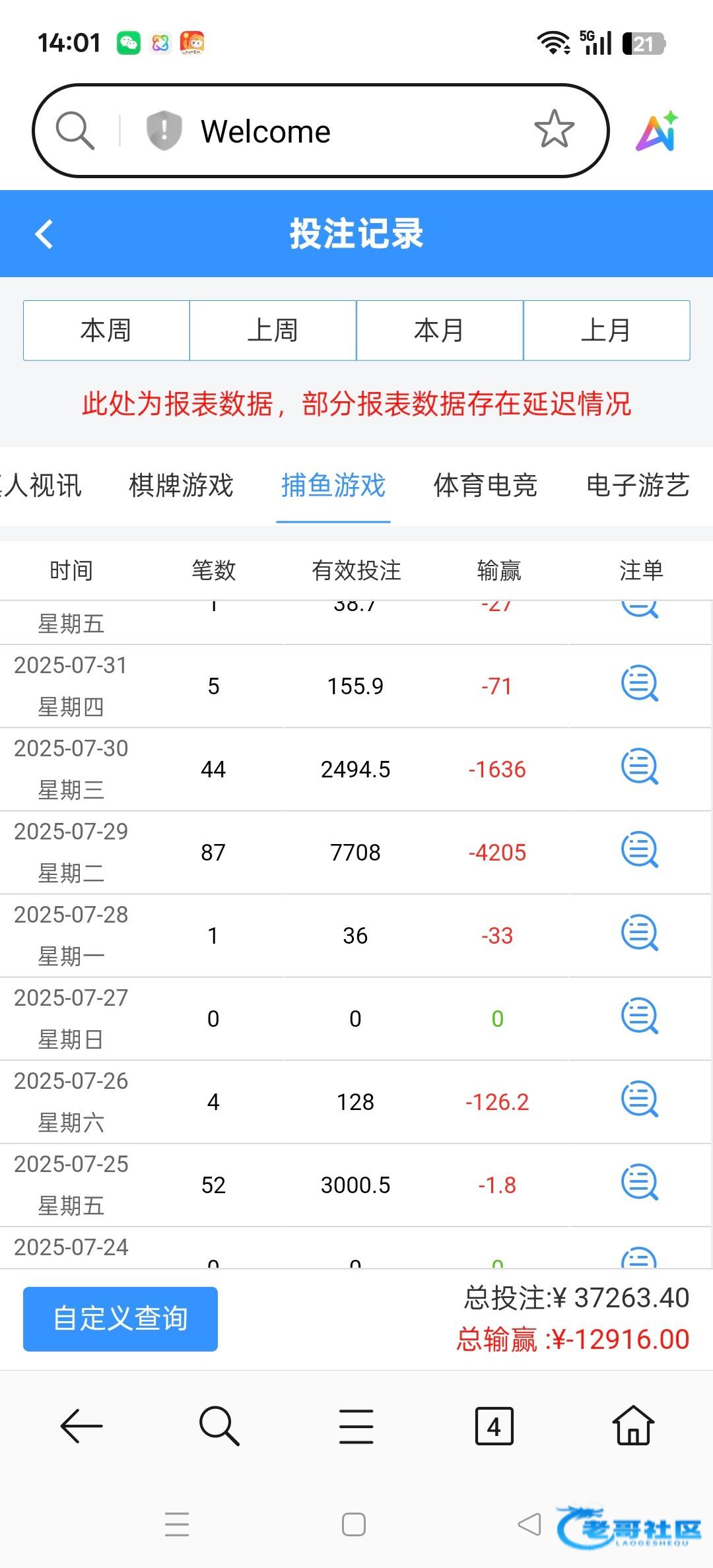 7月份开始玩,百家乐输1100,电子输了3000,尤其是捕鱼最离谱,只赢过一次360块钱,打网赌的那个头不铁,都以为会回一口,这直接杀猪盘,上来就是直接宰,后台锁号控制杀你