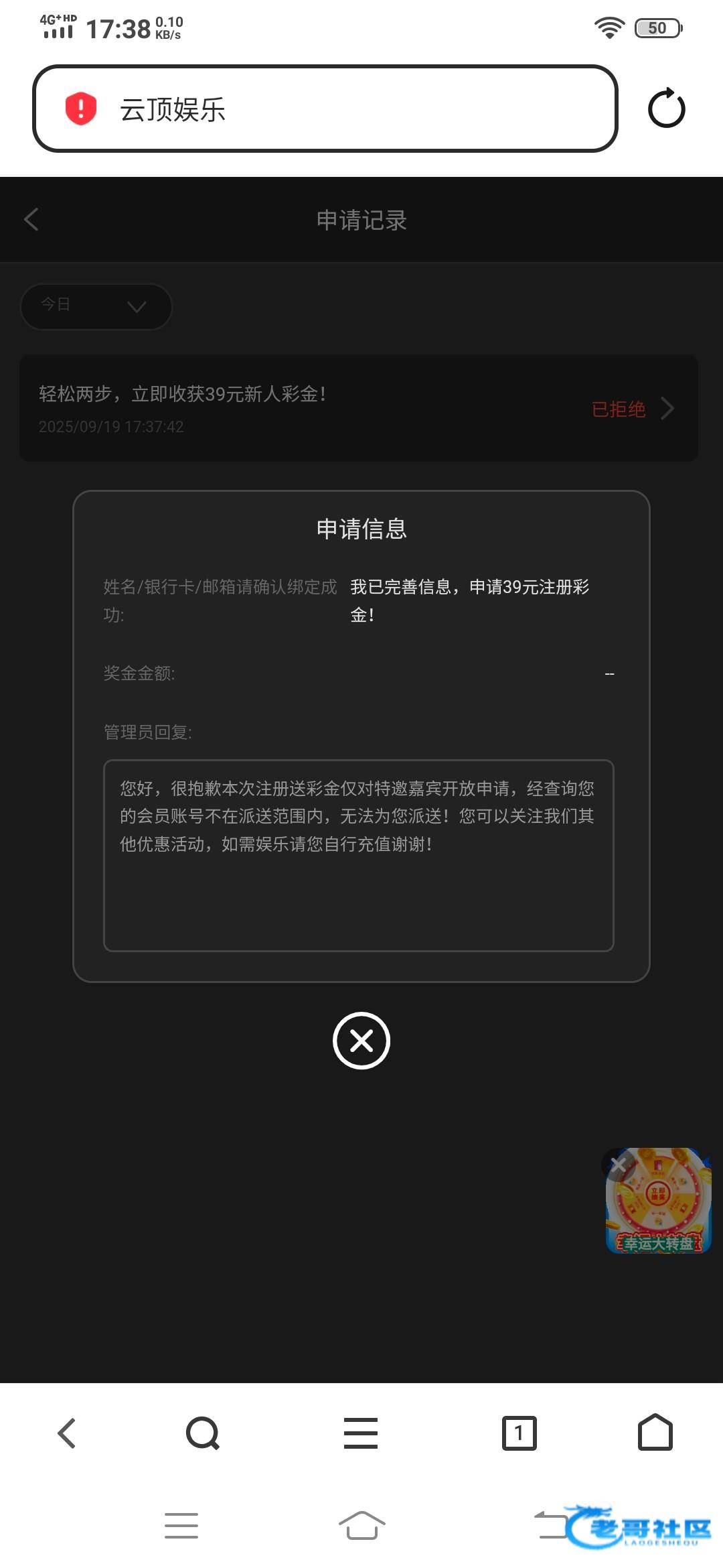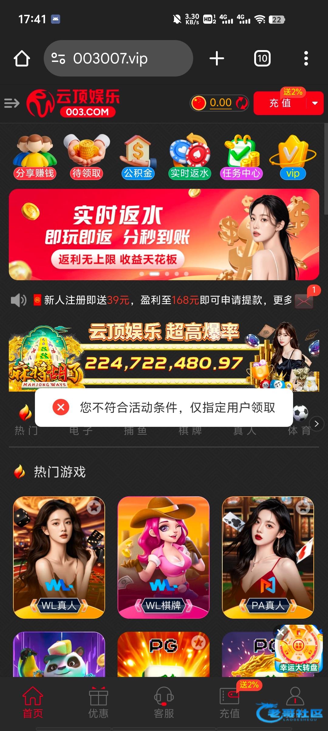 您好,很抱歉本次注册送彩金仅对特邀嘉宾开放申请,经查询您的会员账号不在派送范围内,无法为您派送!您可以关注我们其他优惠活动,如需娱乐请您自行充值谢谢!