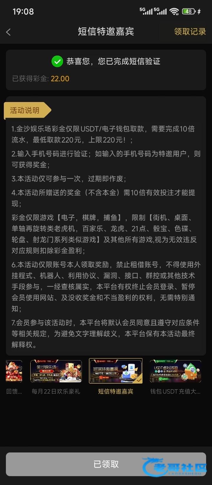 有的账号有水有的号没水,第一次领的时候随便打几下就上400了,这次另外一个号码领了,连40流水都打不到