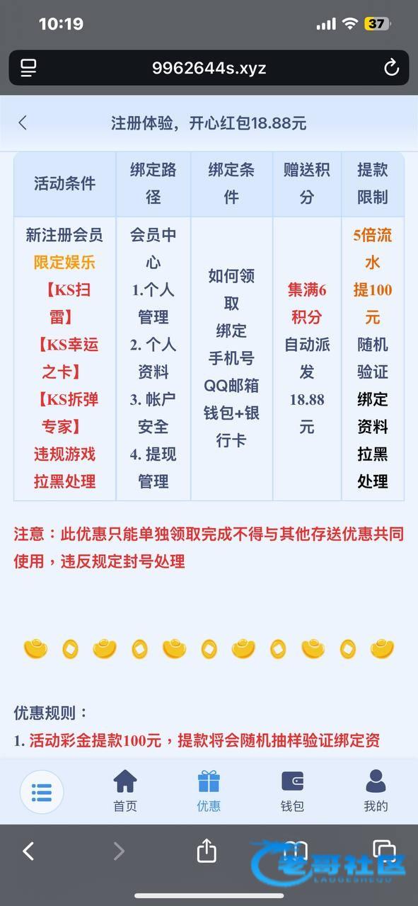 梦想娱乐改活动了,现在注册绑定资料可以兑换12.88,只能玩ks里的扫雷,幸运之卡和拆弹专家。之前送9.9,没有领过的可以去看看。