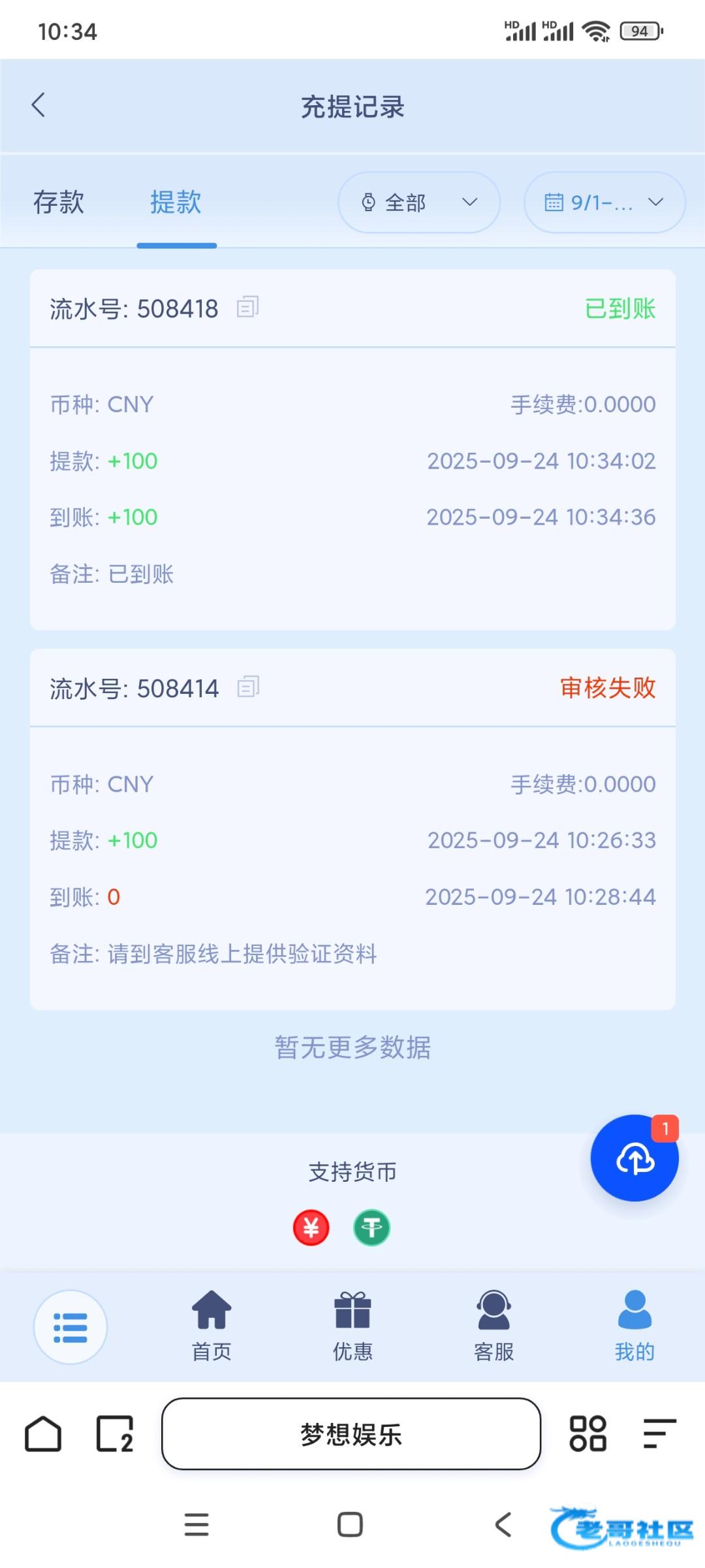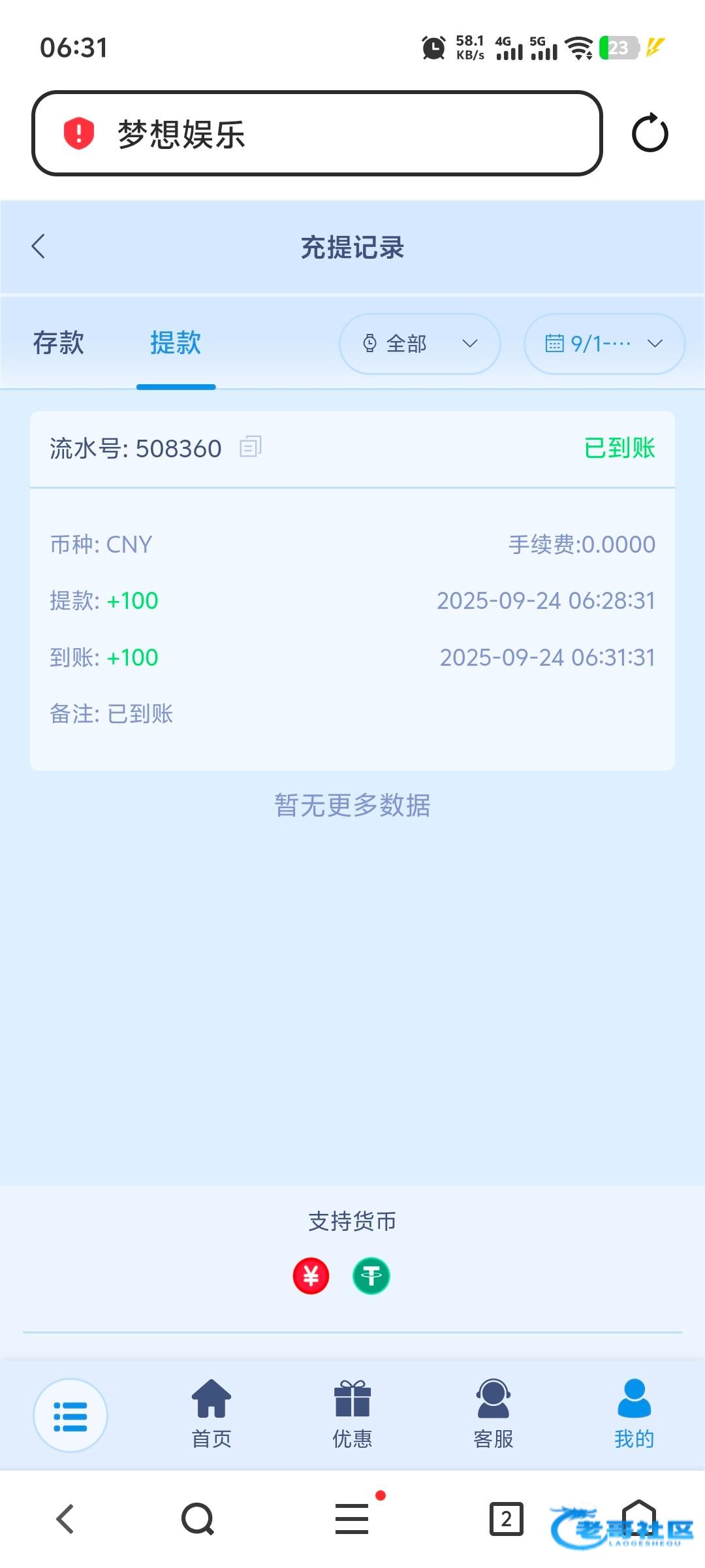 提了一百不知道能不能到账