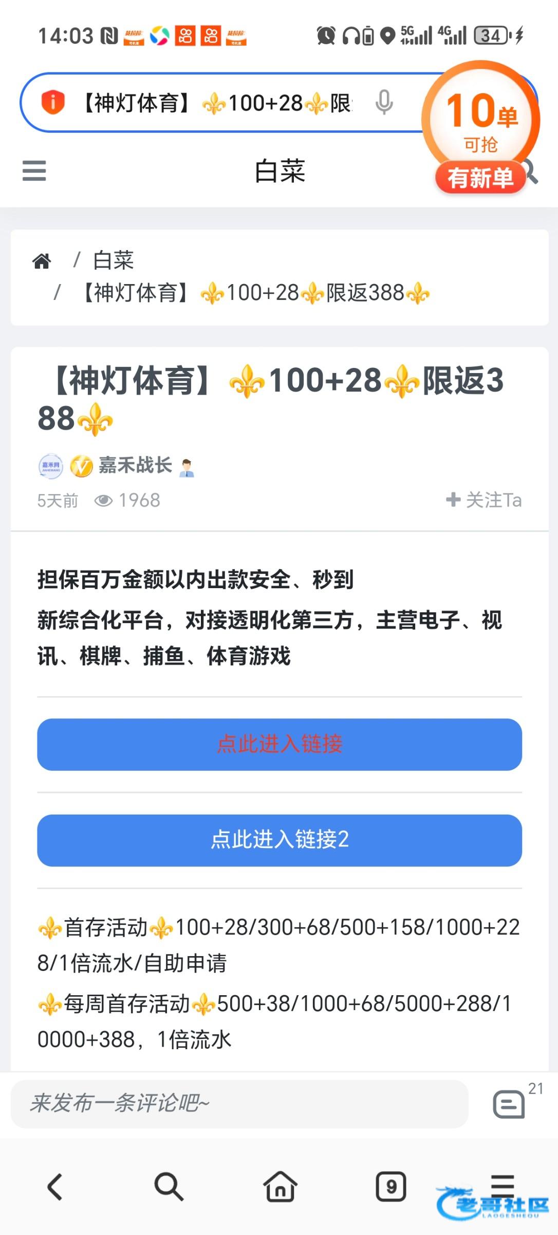 隔壁站长推广神灯体育帖子,上面写的百万以内无忧,结果充值1500,提现2100,说我套利,我赢了600块钱,全程pg,可以买他们命了,站长去跟那边聊了半天,然后说我不是他的下级,走的他的链接,我居然不是他的下级,就算不是下级,那么好,充值1500,提现2100,玩的麻将胡了二,我怎么套利了?我连首存彩金都没有领取,还有不是他的下级就可以黑吗?这他妈纯纯就是黑平台,各位擦亮眼睛吧,跟对人吧,真是个畜牲,辛辛苦苦跑货拉拉的钱,都吃我的,还把我的帖子删了,你没有鬼,你删我帖子干嘛?