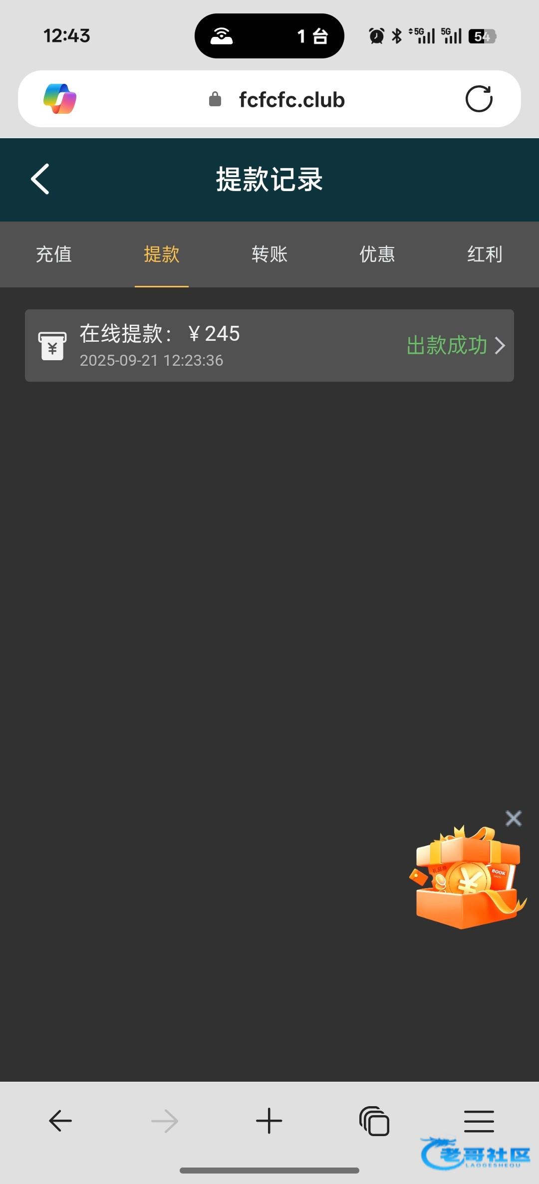 中奖的自己到论坛-消息里面查看代码即可, 已经派发了,代码到平台会员中心 彩金代码兑换,彩金代码38 提款上限388 15倍水不限制游戏,祝兄弟们长虹了!
