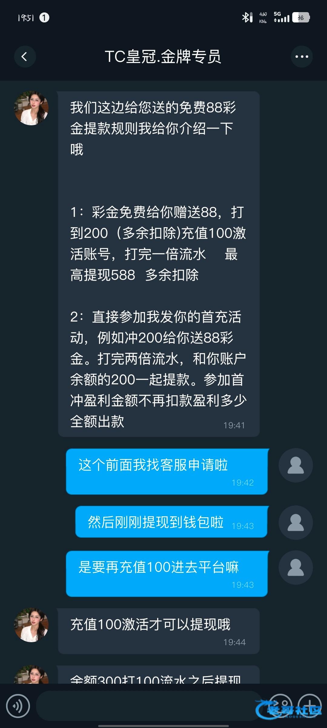 wc20050301 ▶ wc20050301 笑死我了 钱包那边的客服说打到200要充值100到平台然后打一百流水 才可以提现 但是平台那边直接给我出出款了 我直接卖了 后面发信息给钱包客服钱包那边的客服直接不回信息了 哈哈哈哈 4月前