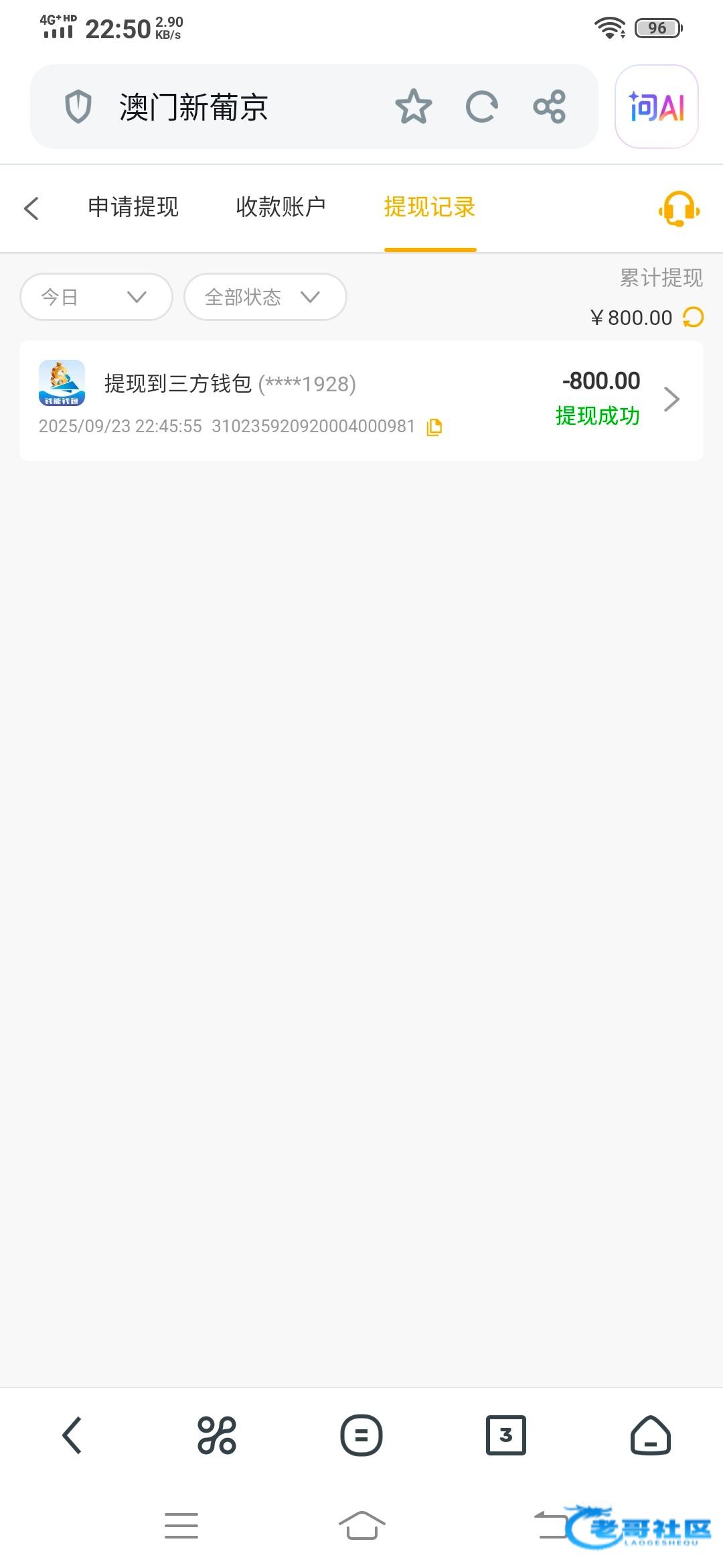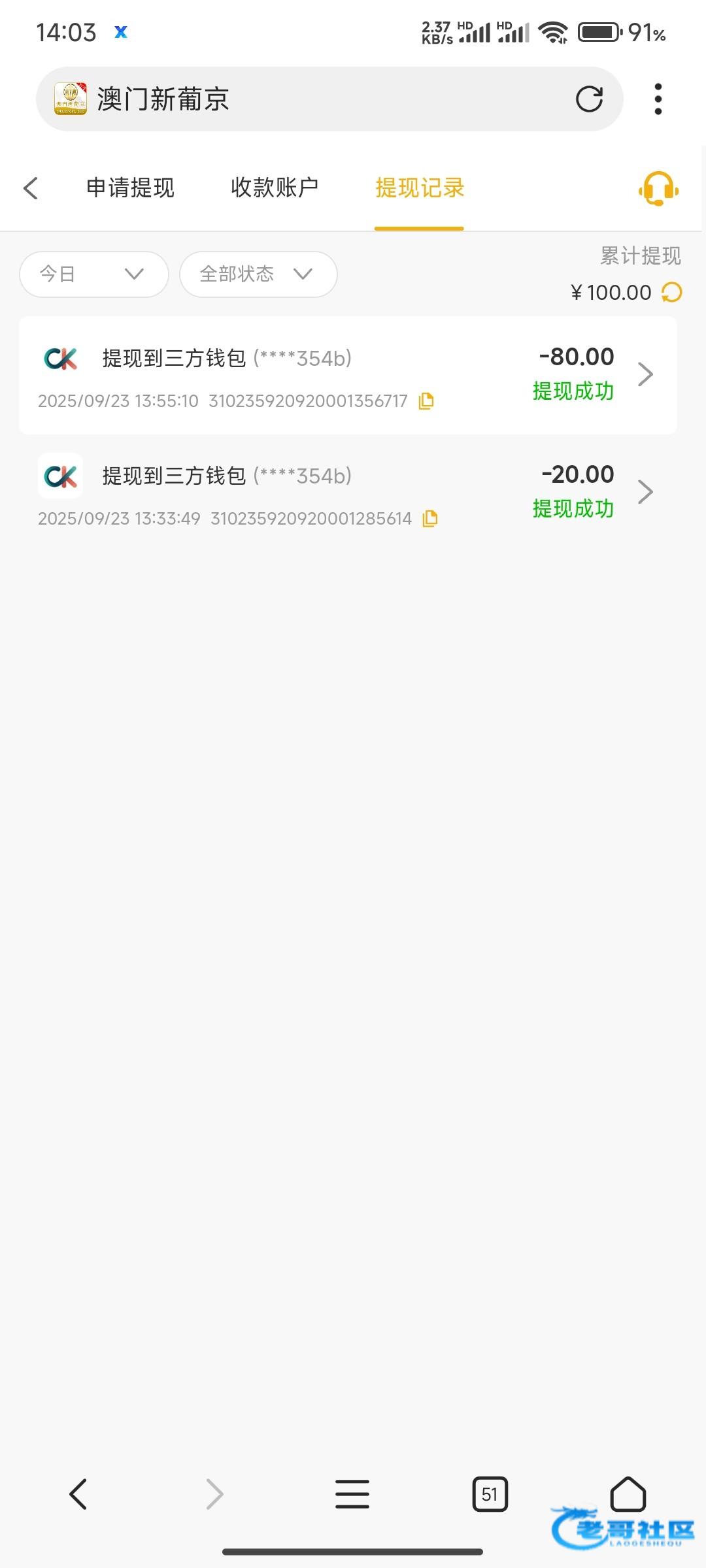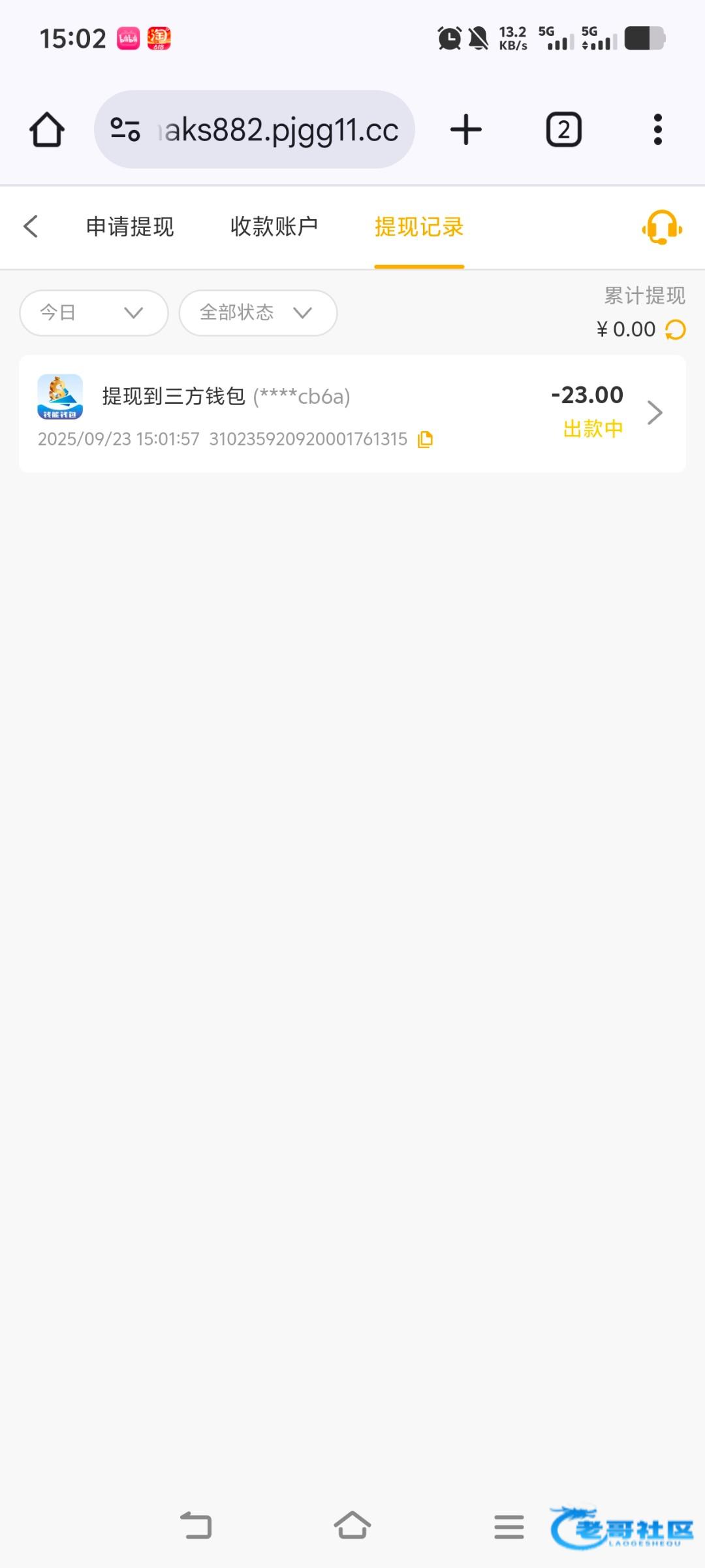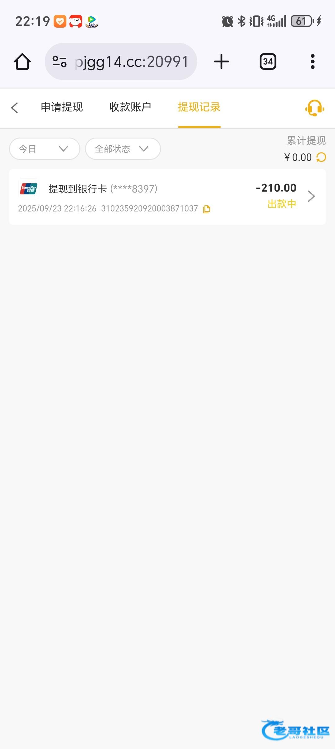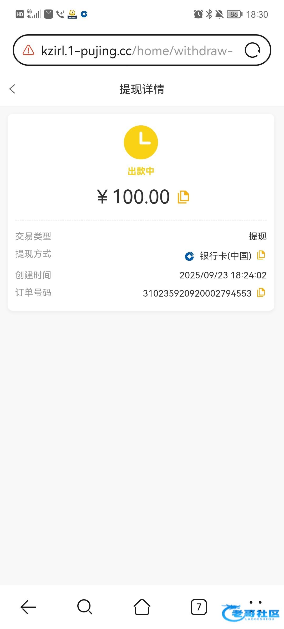 提现差不多半个小时到账了