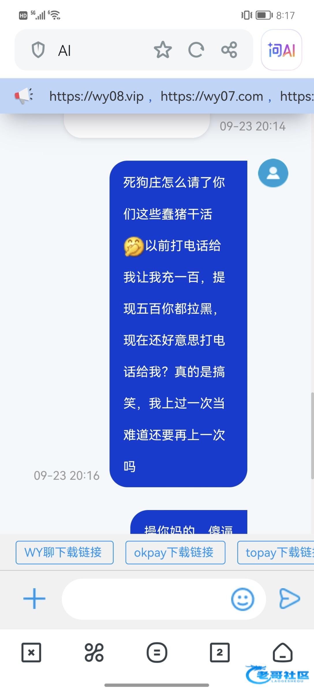 死狗庄脸皮真厚,之前打过电话给我说冲100送100三倍流水提,我那时候红了就想着100而已就试试,然后打够流水了提500直接拉黑拒绝出款,傻狗活不起了。骗过我一次还想骗我第二次,今晚又给我打电话,被我狠狠的中出了一遍。真的是把老哥当日本人整吗。网址8wy.cc
