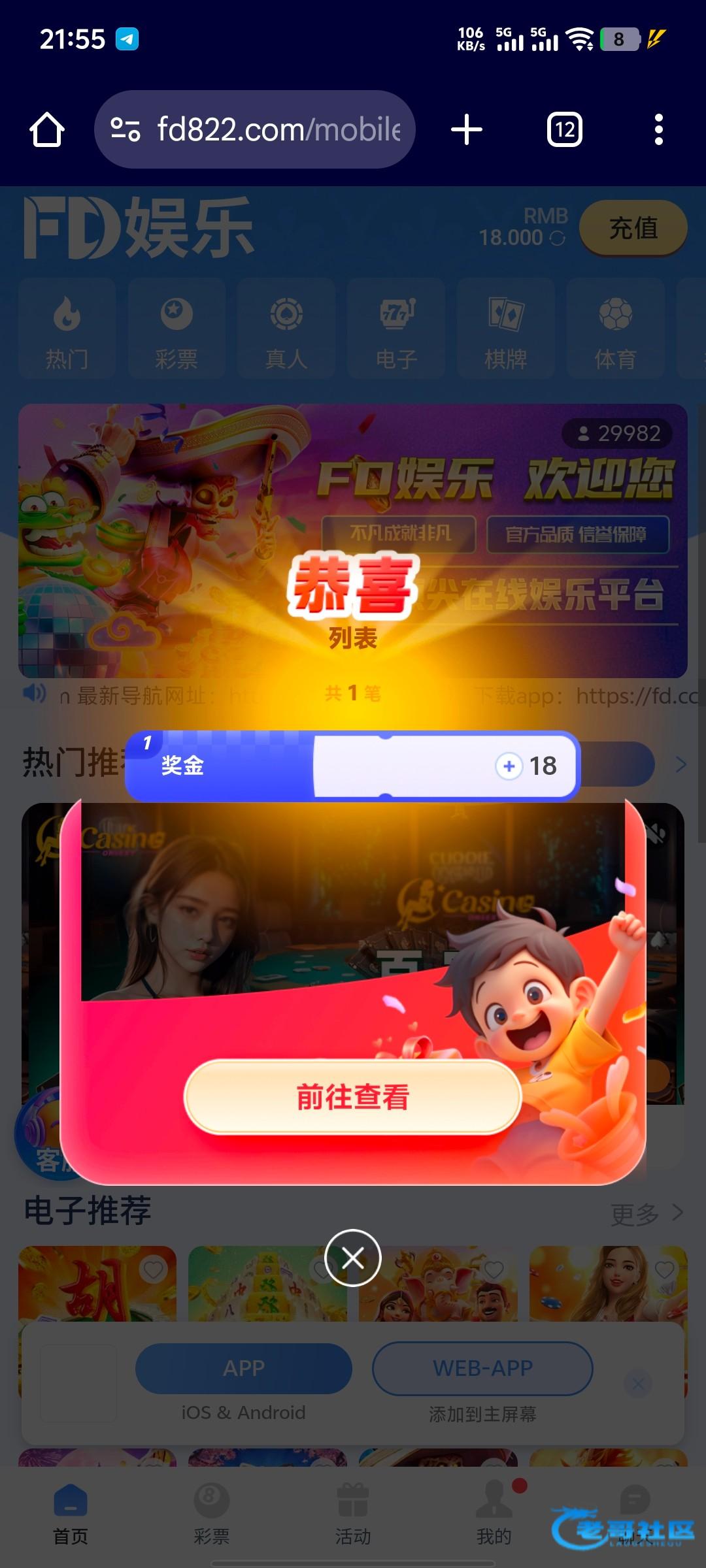 拦截跳出来的,注册找客服送了18彩金。优惠里有这个活动FD822.com