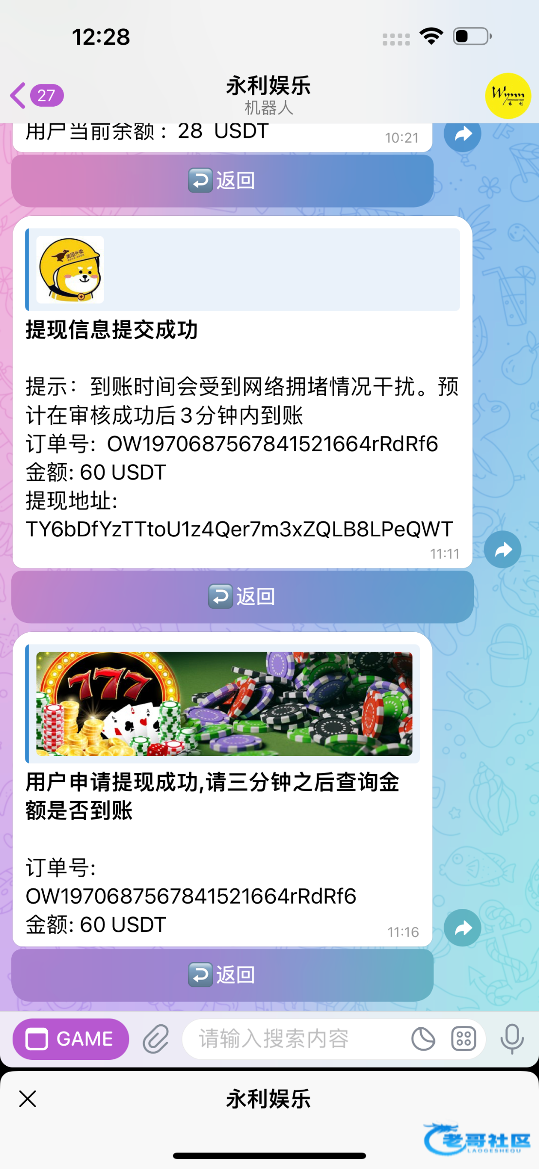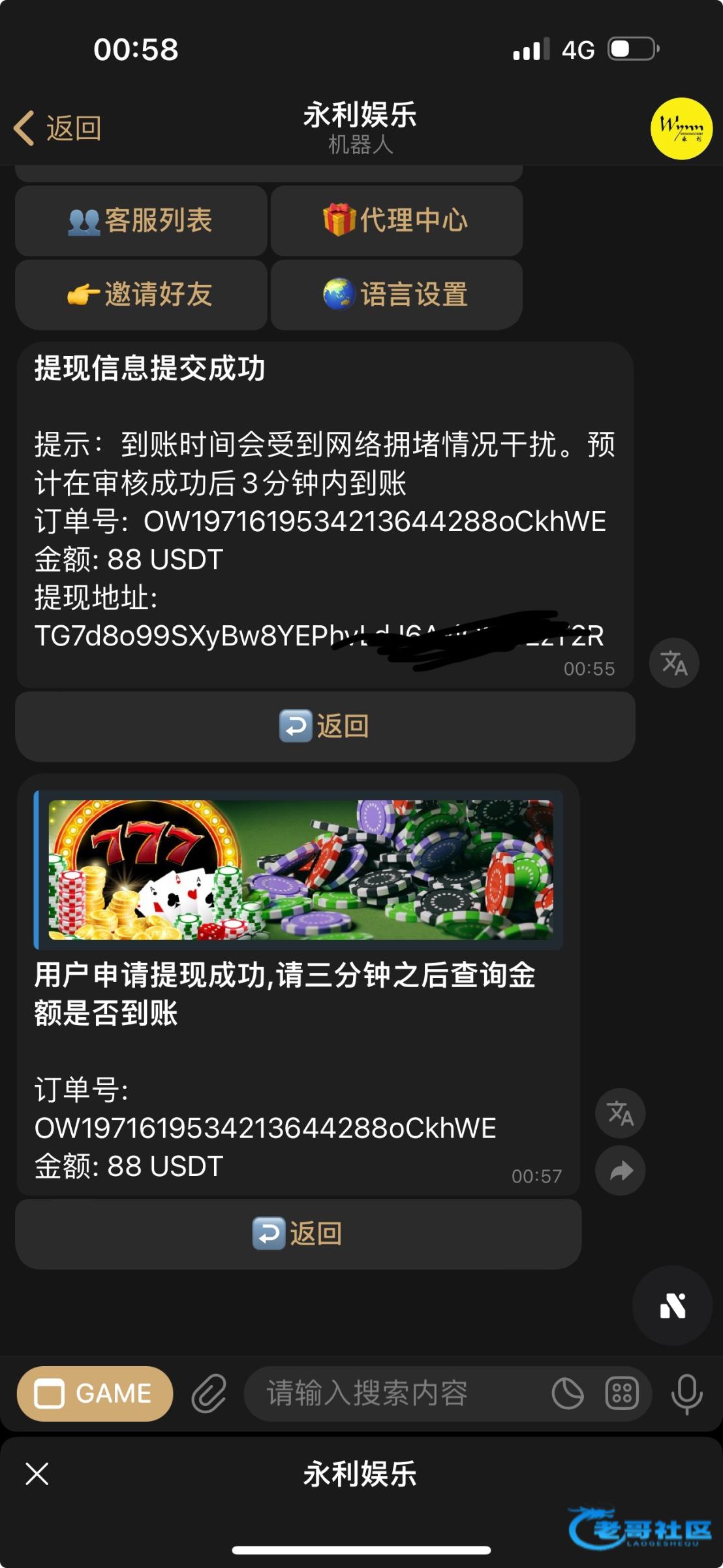 前段时间发的永利又可以领了,亲测两个号出110u官方客服:@YL87658765 机器人:@yongliyl_bot