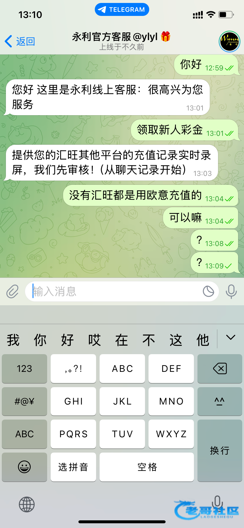 我录的火币 ,客服叫你录汇旺 你别说有没有,直接录有的充值记录就行