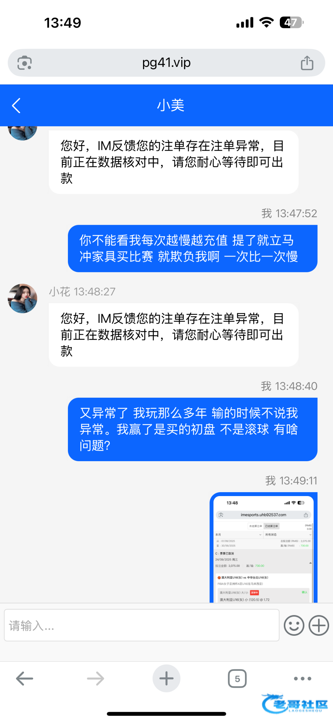 亏损号冲5000提3200 说im注单审核 我输的时候咋不审核?玩了一天就赢了这一场 还是初盘 说我注单异常