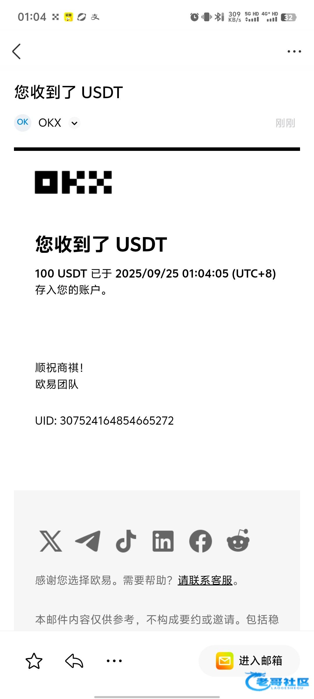 感谢楼主到账了800u,发码团你700u,我留100u就够了