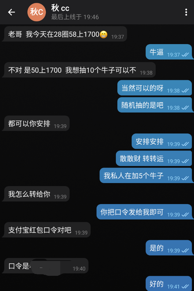 【28圈】秋老哥50↑1700抽15个发财牛