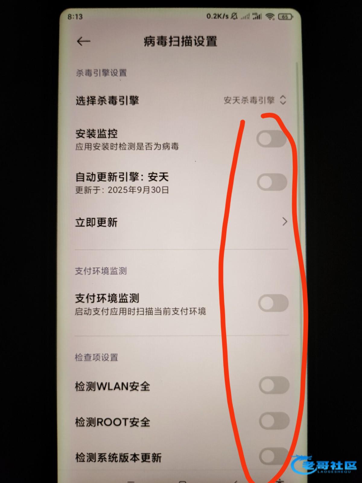 手机管家,病毒扫描,里面的全关