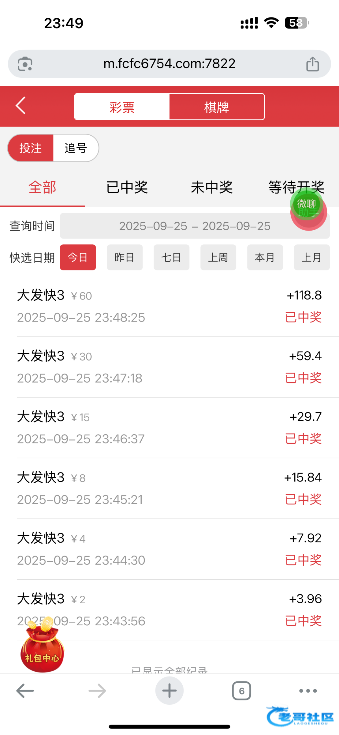 接到电话送两块,过六关,我看看到不到账
