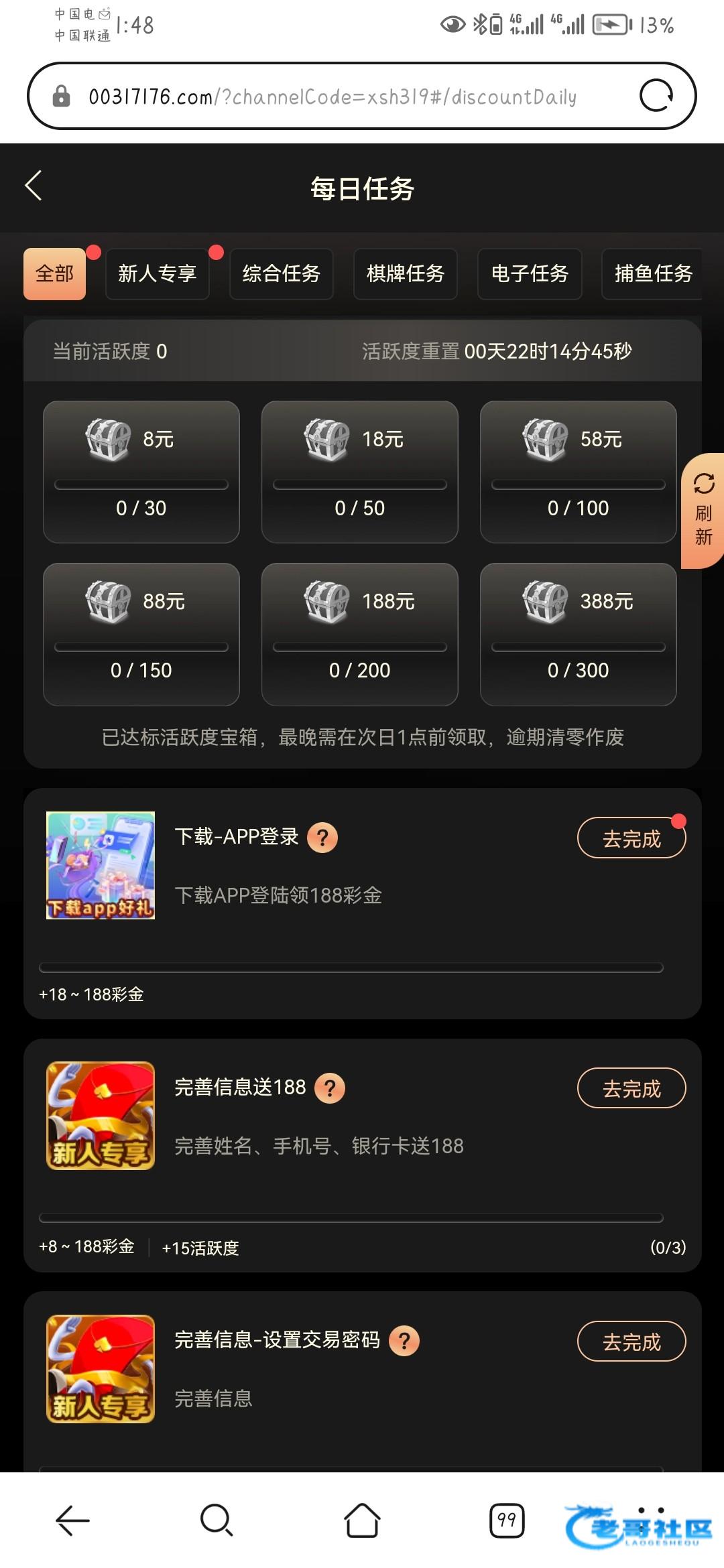 网址319.vip,完善任务送8,不知道黑不黑,软件上看到的
