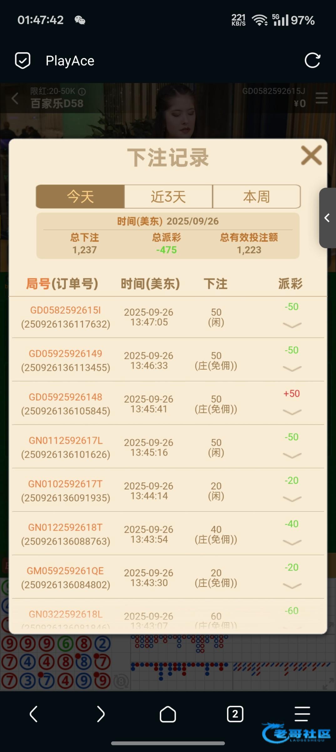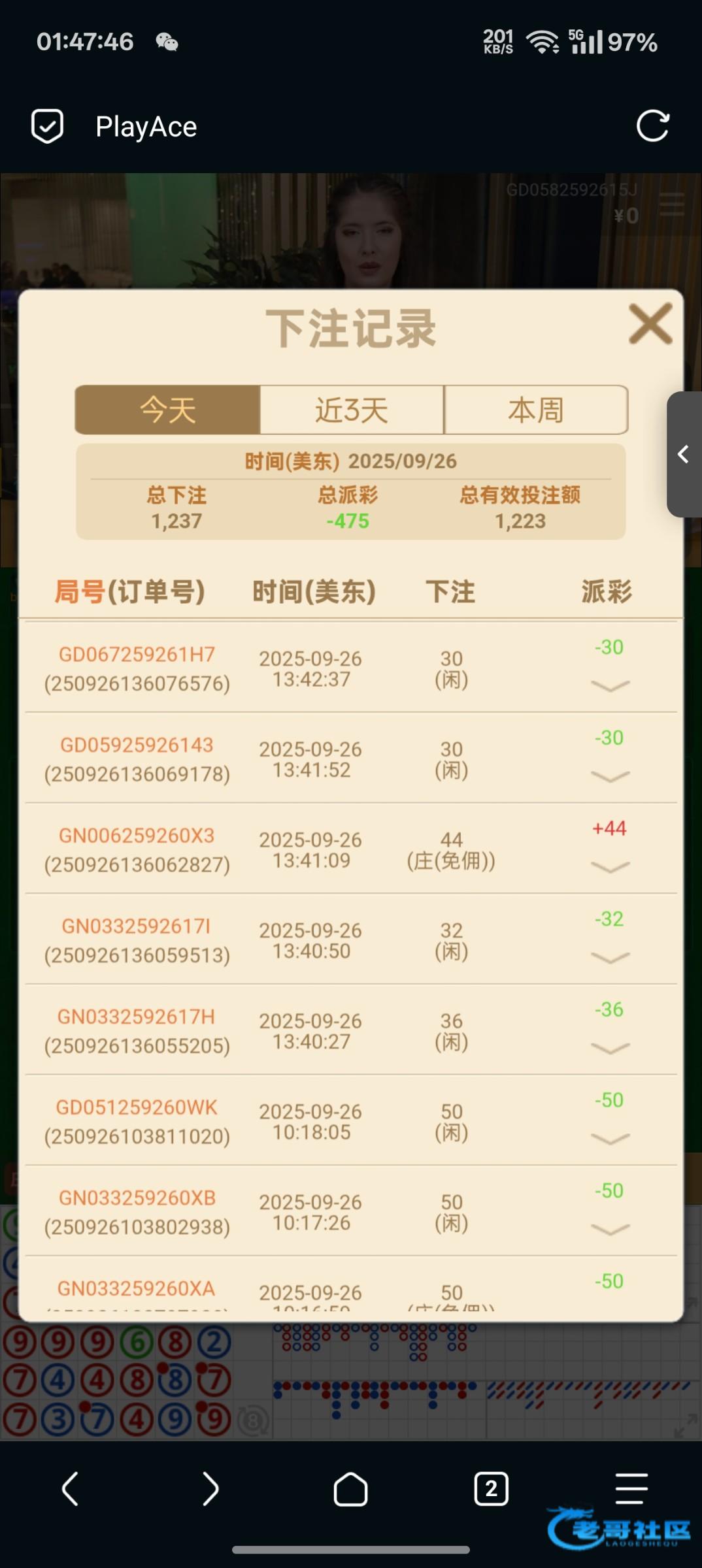 200一把均注跟龙 pa一直磨到5000出了