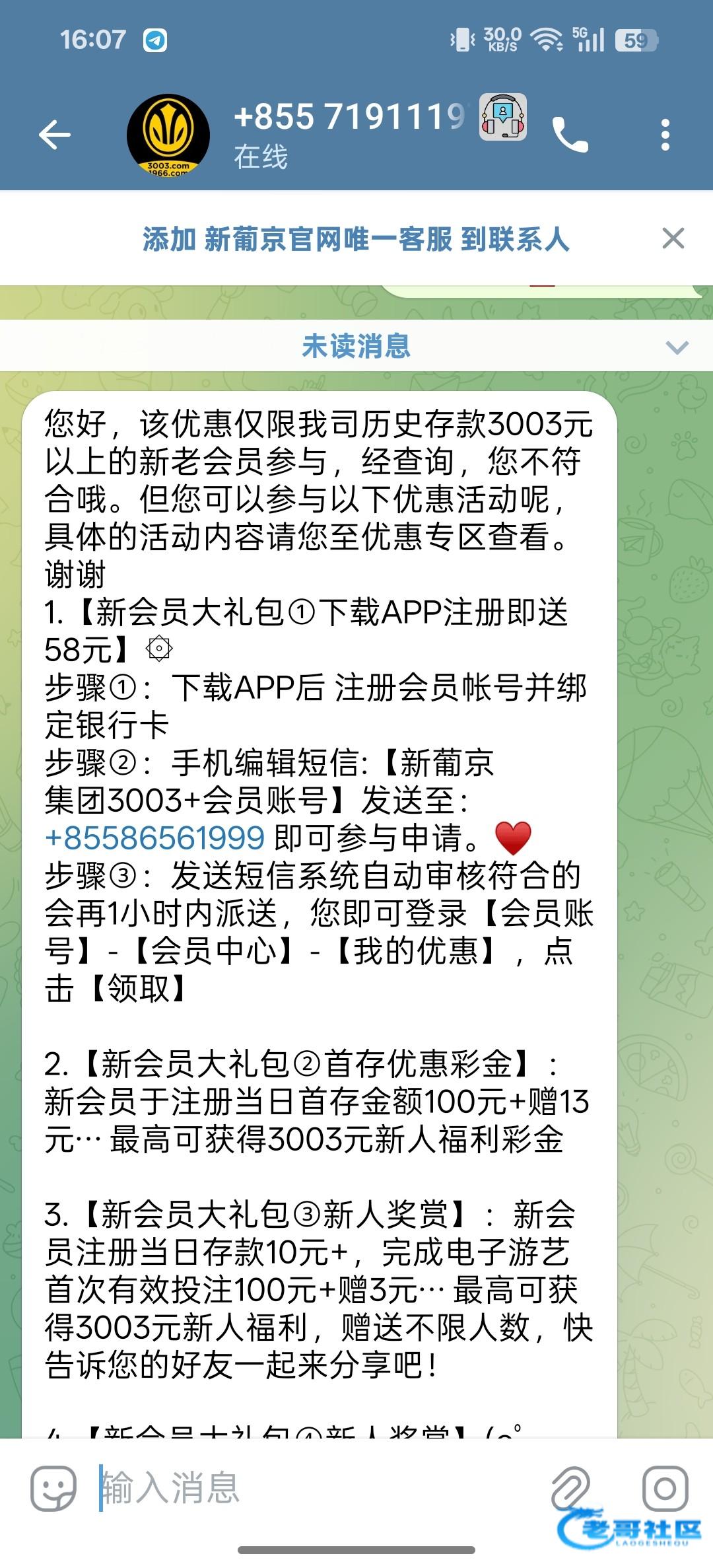 您好,该彩金仅限我司历史存款3003元以上的新老会员参与,经查询,您不符合哦。