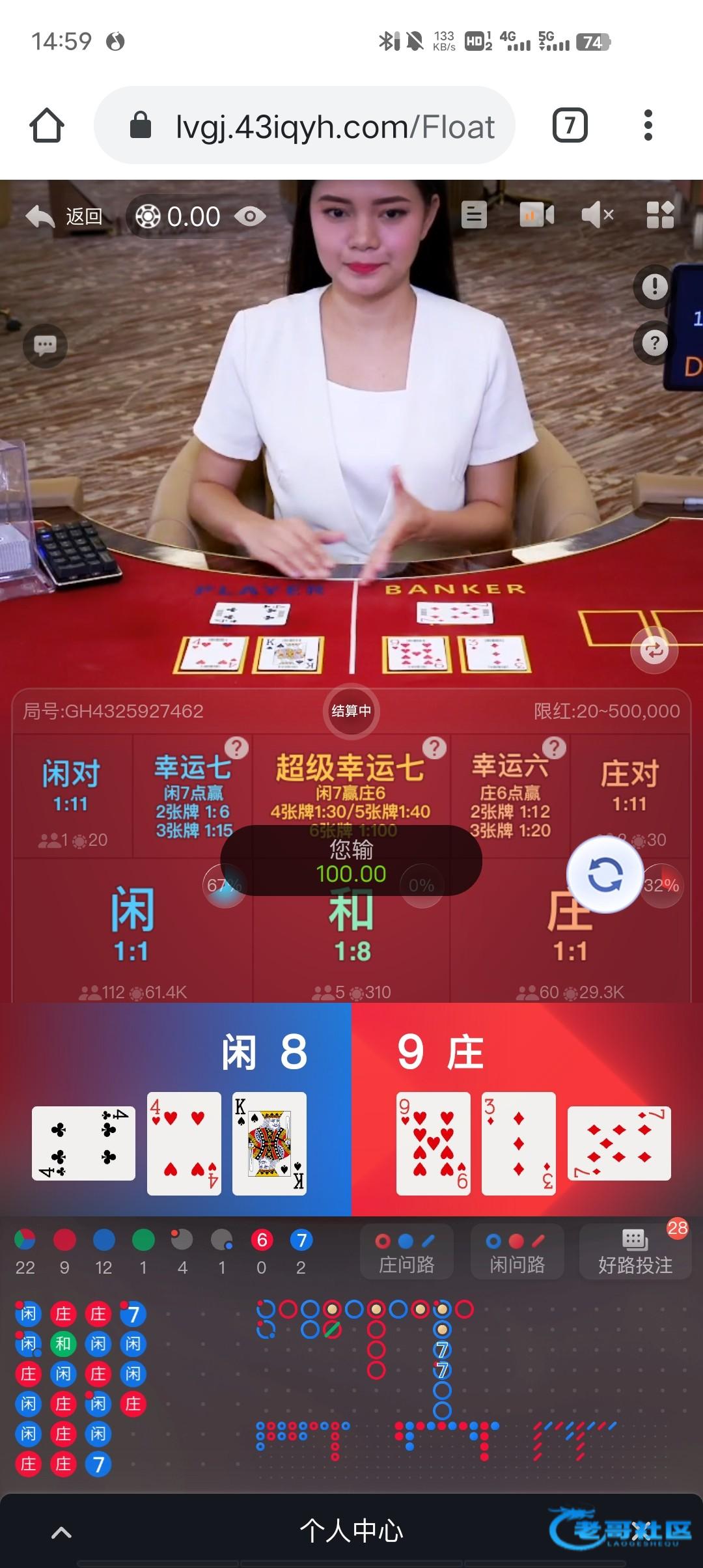 5次闲的时候我都会下几次庄反龙试一下,这是我的个人习惯输了就啦几把倒,不过我不会下大我会先下一两百试一下底,一两百输了我就翻倍,要是那样还输了,还是输完了我会直接卸载软件,眼不见心不烦,