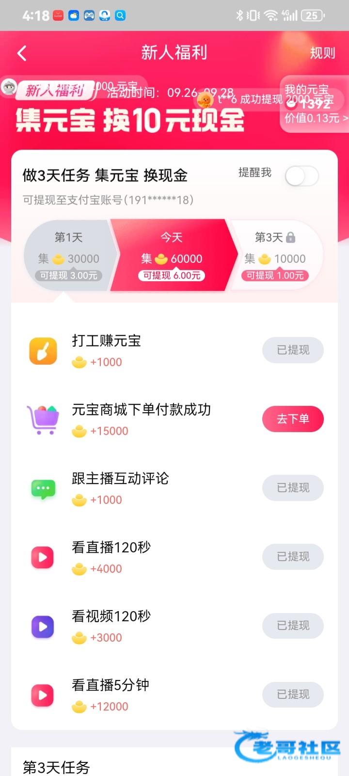 应用商店搜索点淘下载点主页新人福利完成任务领