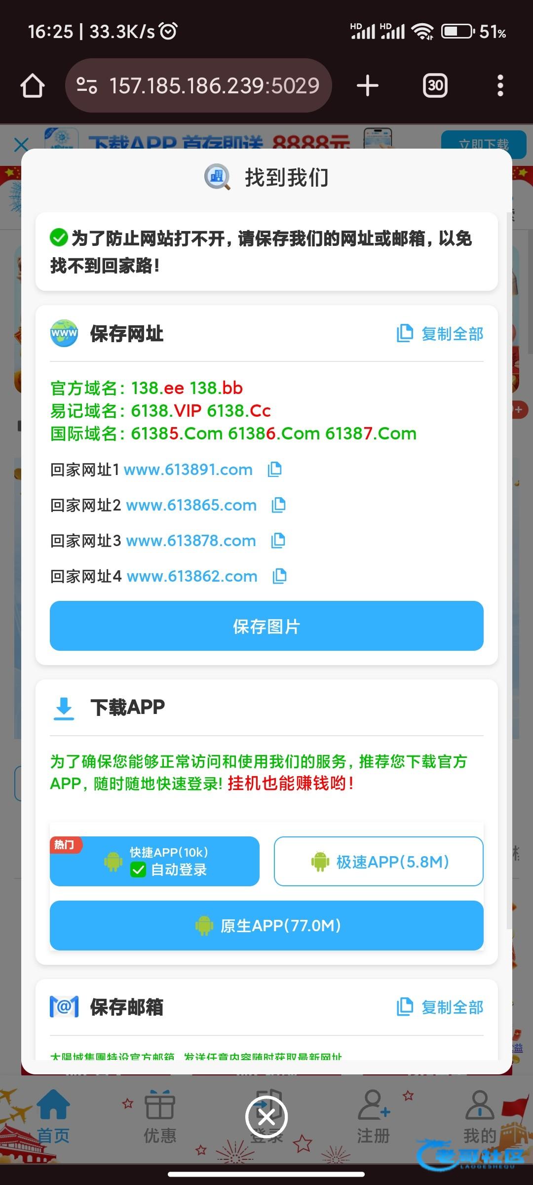 先注册国庆节领20截止9.30号,我也不知道是什么狗平台,不知道哪里来的!我也没注册过!网站放下面了,先注册国庆节领20链接138.ee