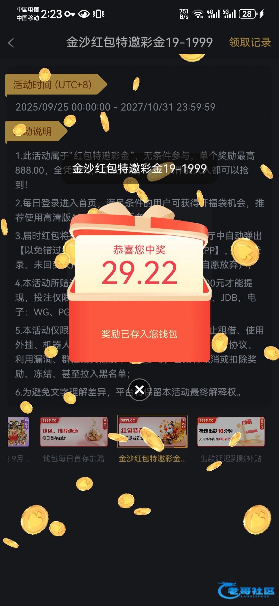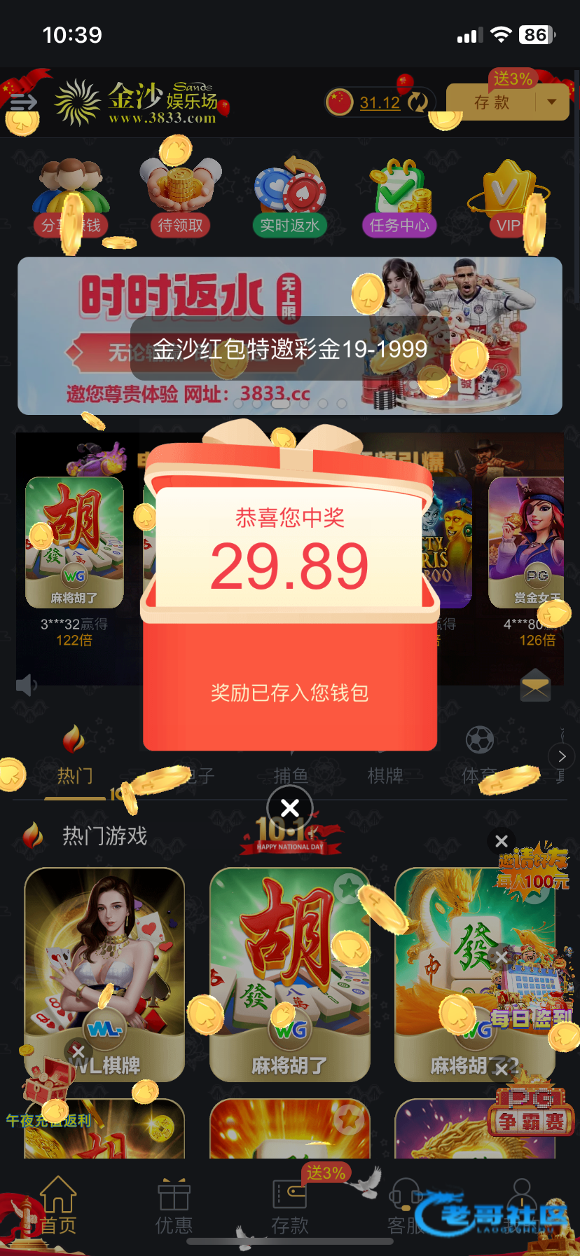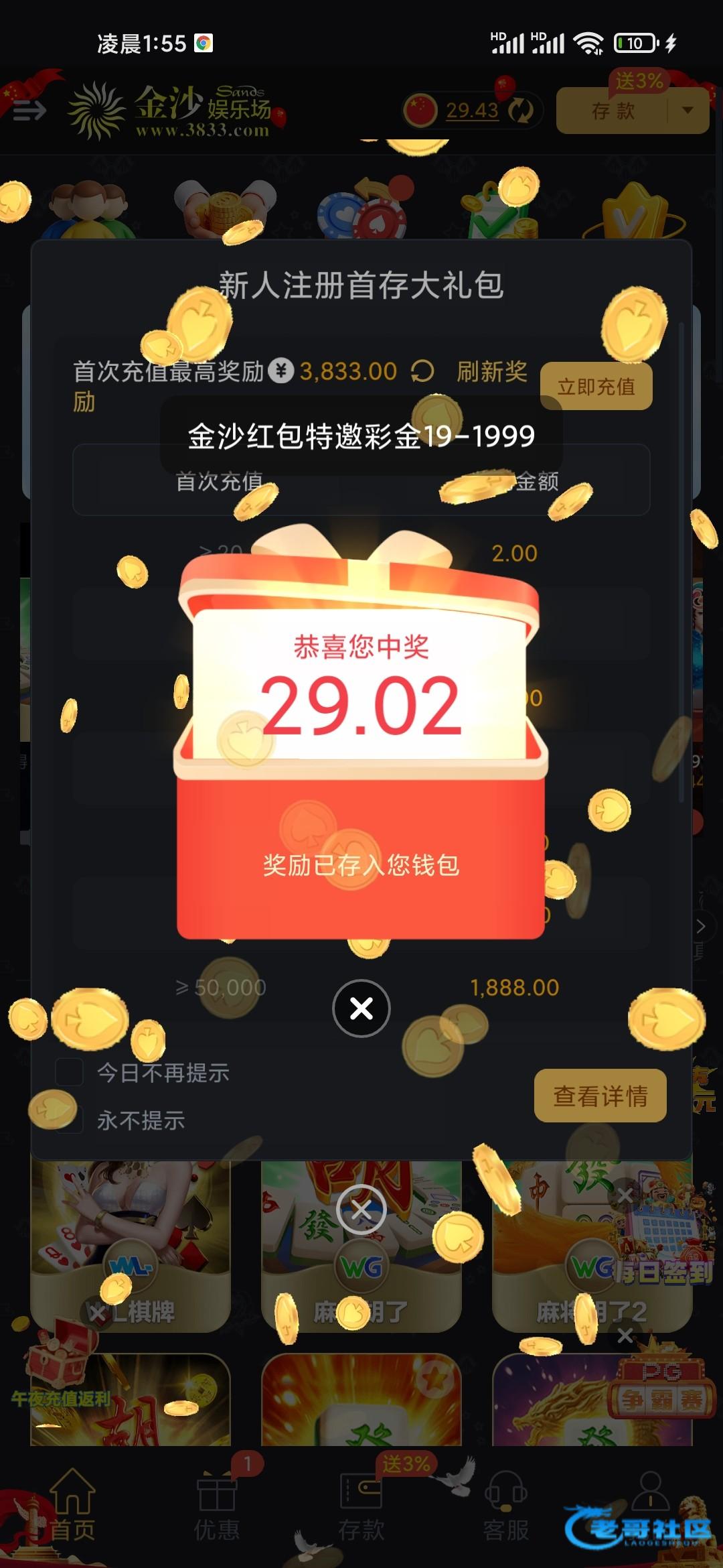 领了29 玩过的老哥可以去看看 我充过几十 官网 www.3833.com