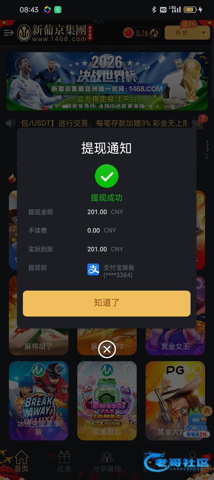 白漂200大洋 就是提现有点慢提了一个小时