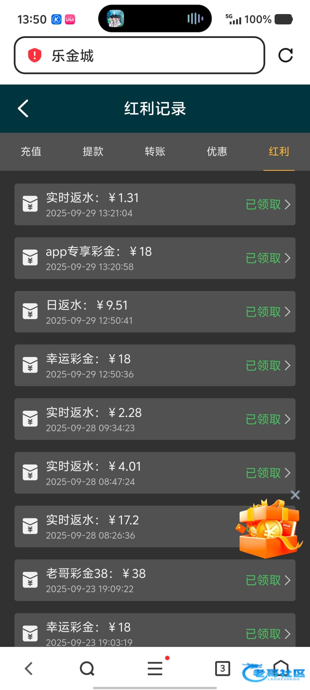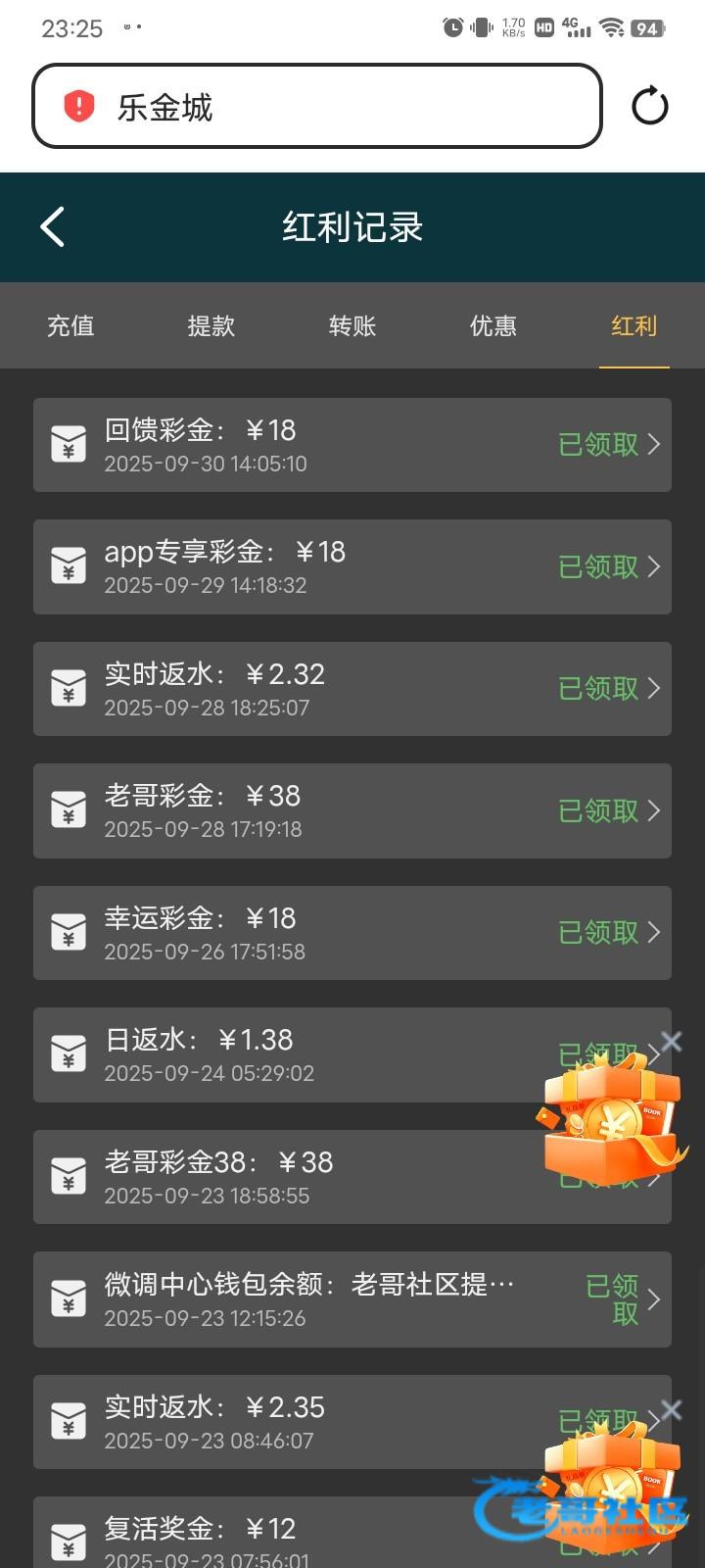 今天又有彩金了