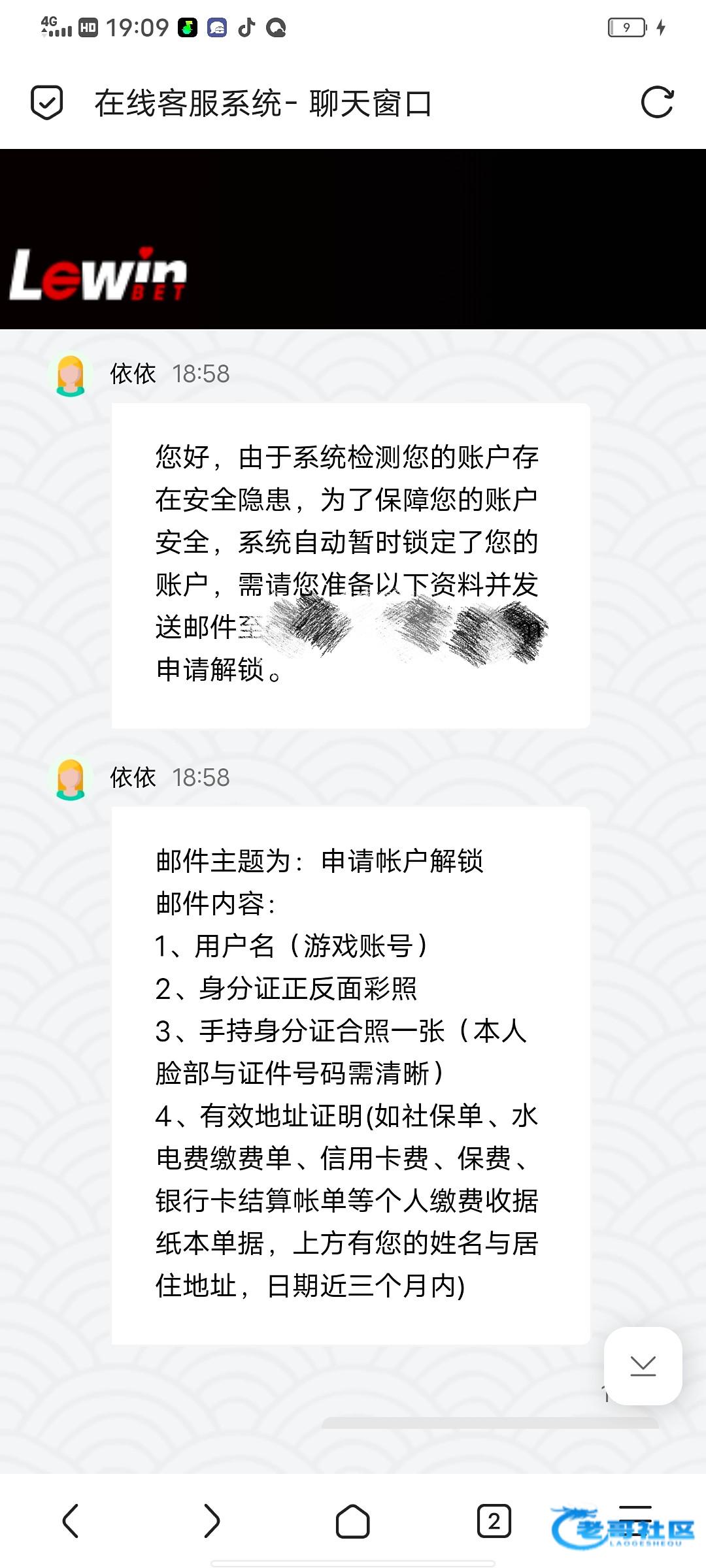 很不好消息,百分之95概率是被黑了,中午登录账号的时候发现账号被锁定了,问客服说账户因系统侦测存在安全隐患,故暂时锁定,让我提供身份证正反面这些,具体看图吧,我不知道能不能弄,其实到了这里我也不指望能提出来了,如果老哥们觉得客服说的没问题,可以尝试下我还是愿意去提供下的,其实最主要是最后那项纸本单据很不好弄然后说最少要一个礼拜审核时间,老哥们帮我拿下注意,如果能出款到时候抽15个豪华猪脚饭。这也并不是白嫖的是我自己充值的1000打的回归存送。