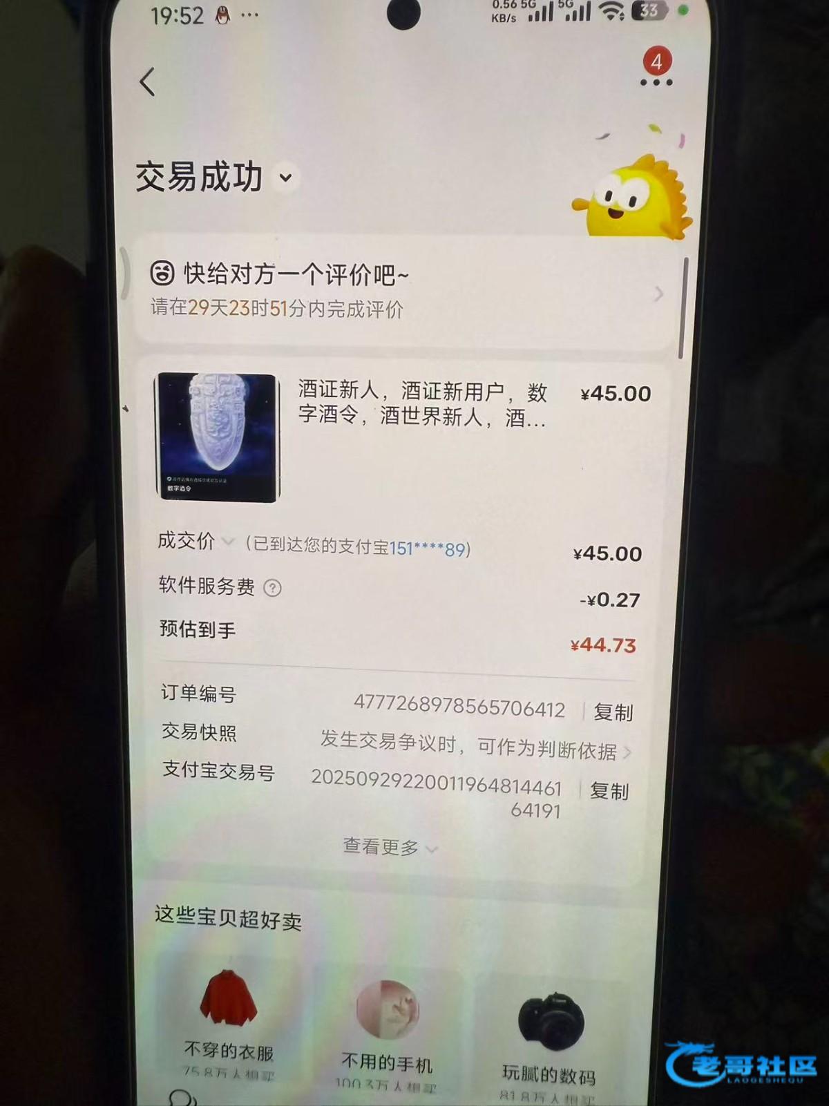 45今天秒结,藏品明天才能卖.24小时能卖