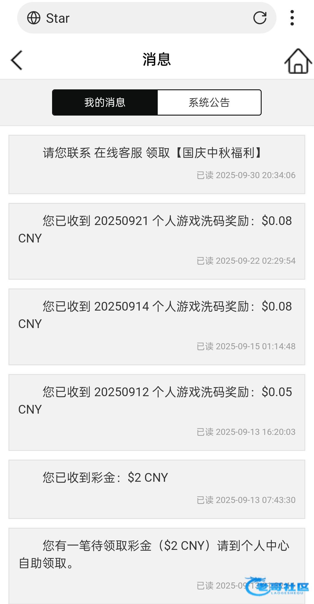 目前没有有通知送彩金