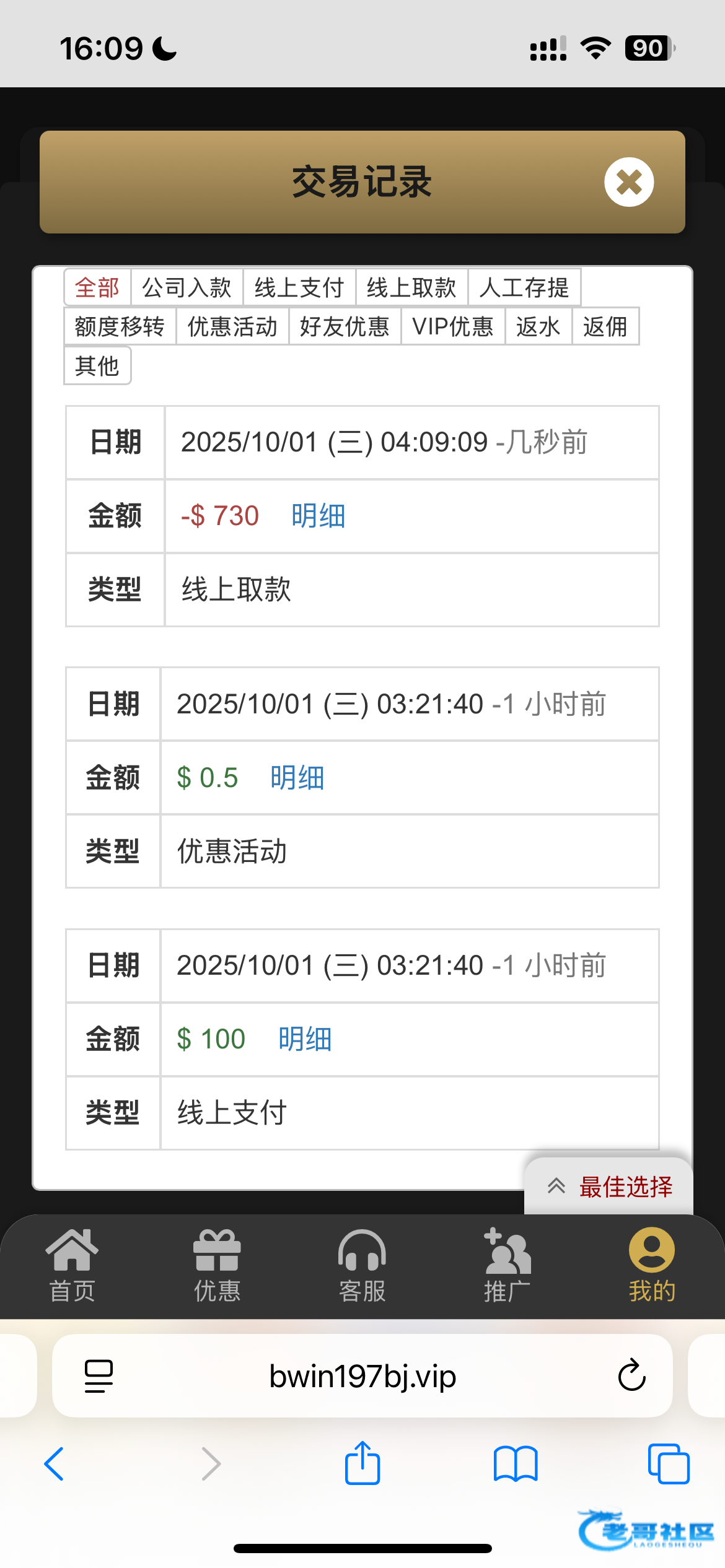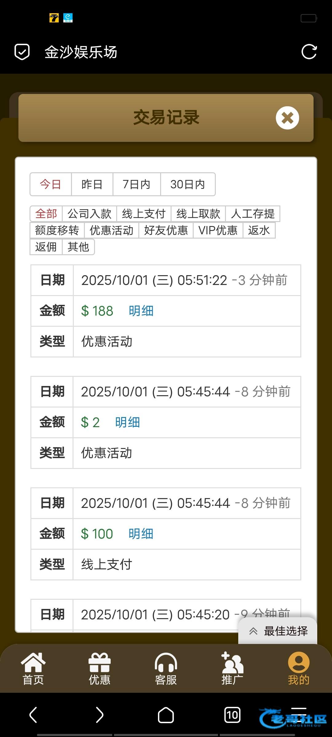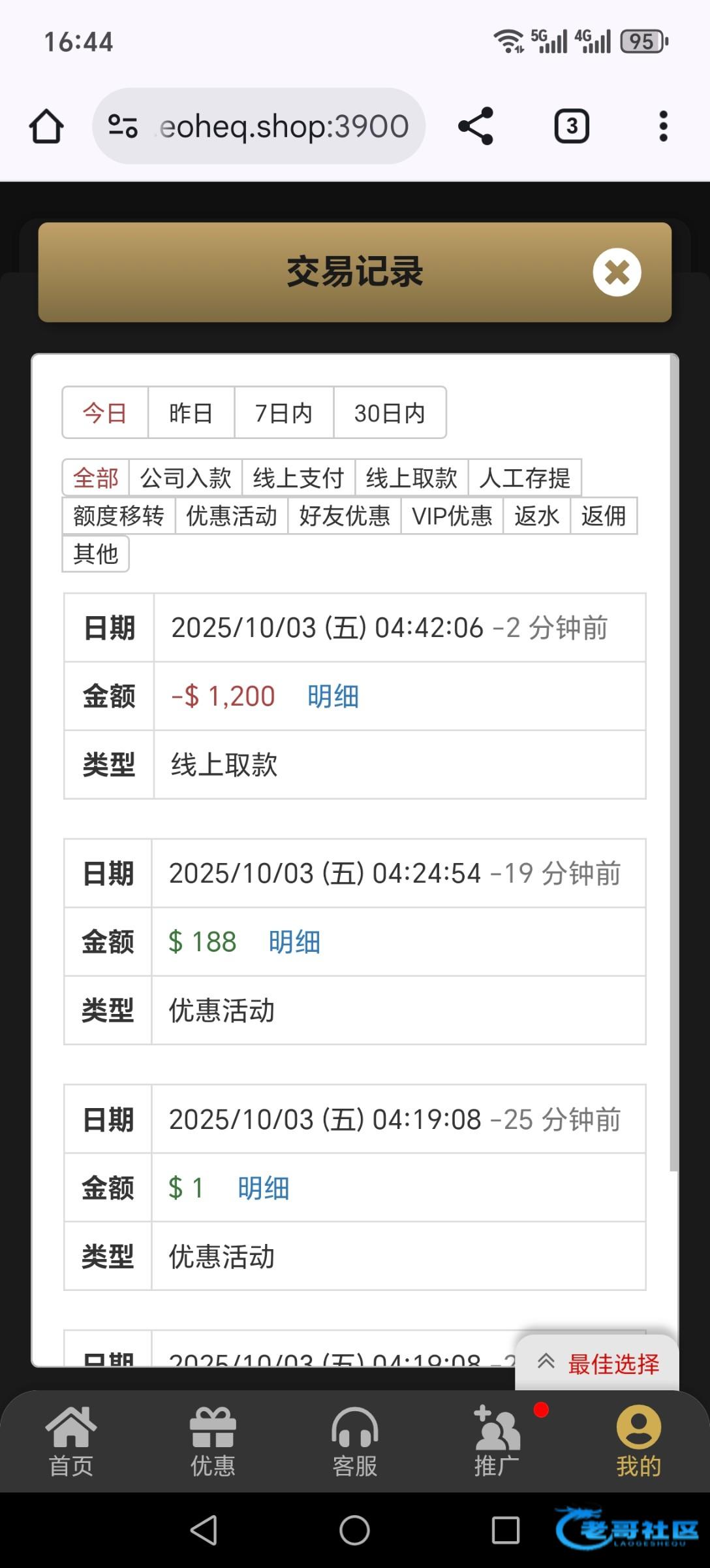 这平台我打码了100万流水,很负责的告诉你们就是一个司马平台!你玩电子以外的游戏或者打码不够充值的3倍大概率让你3倍电子流水!电子跟铁一样!我2个月这个平台一次免费没来过,你敢想?