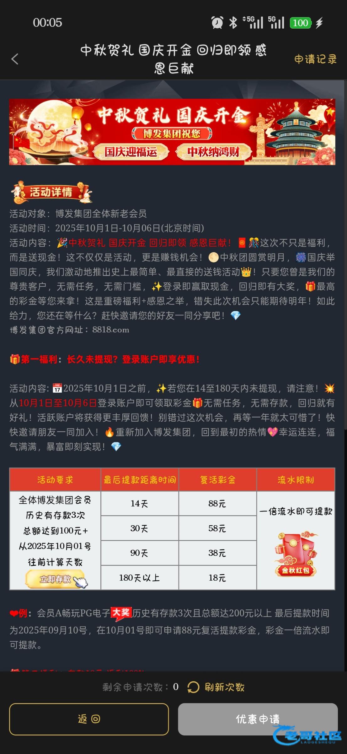 记得好多老哥都玩过 可以去申请一下 最低18彩金 登录还有红包 10起提 8818.com