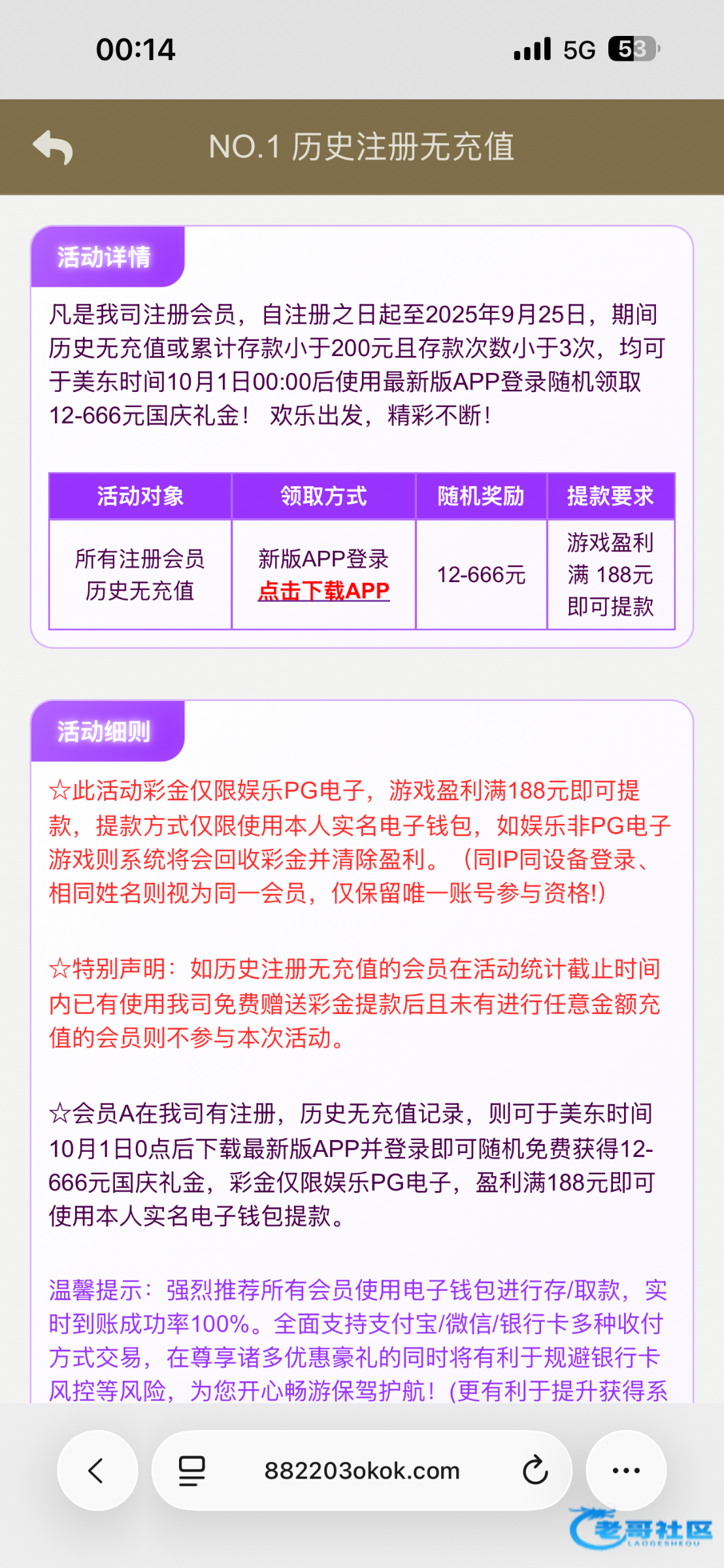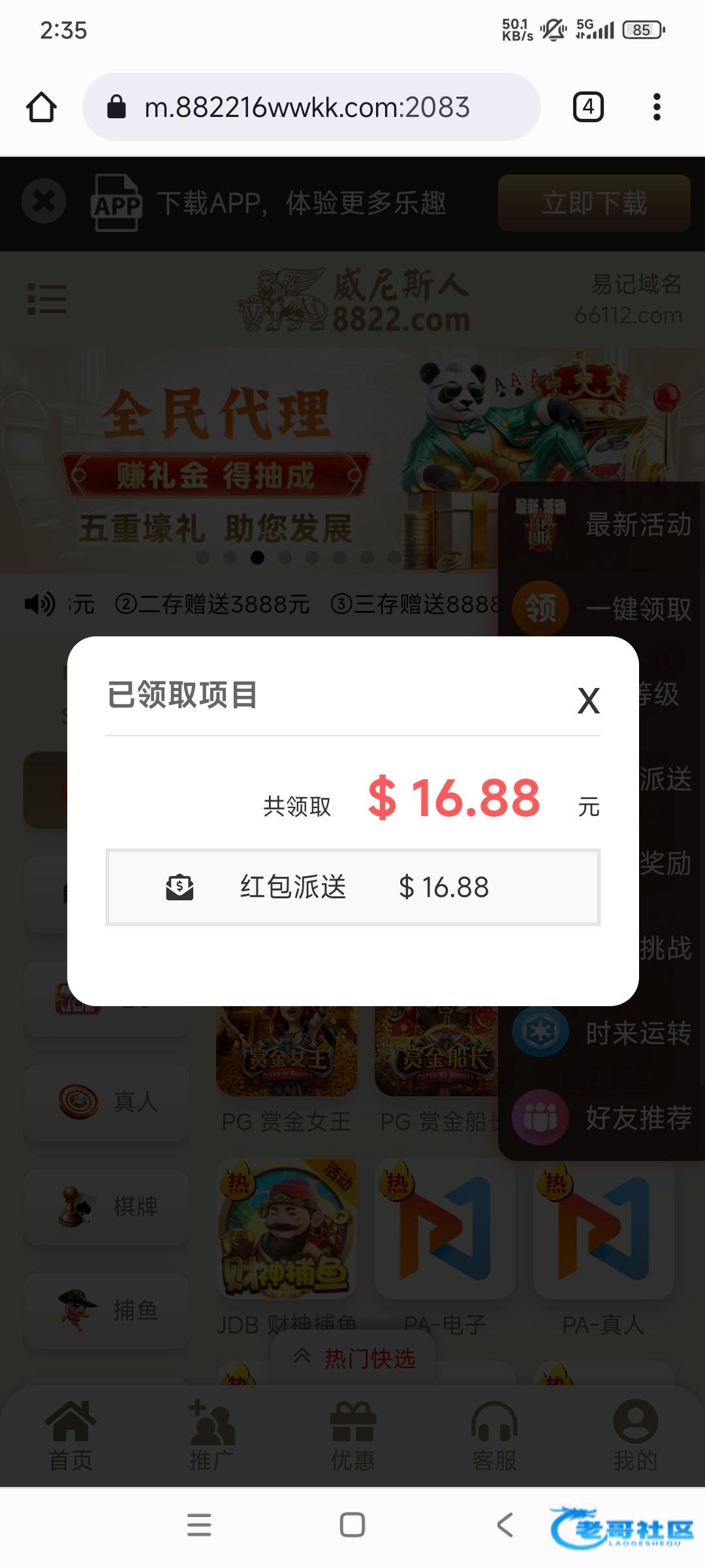 领了13.88 抢红包0.9 以前签到彩金打出来了,让充值。充值的也给出了。第二天签到又打出来100,第三天打出来又让充值。当时升到V3。后来不知道怎么给我等级清零了。