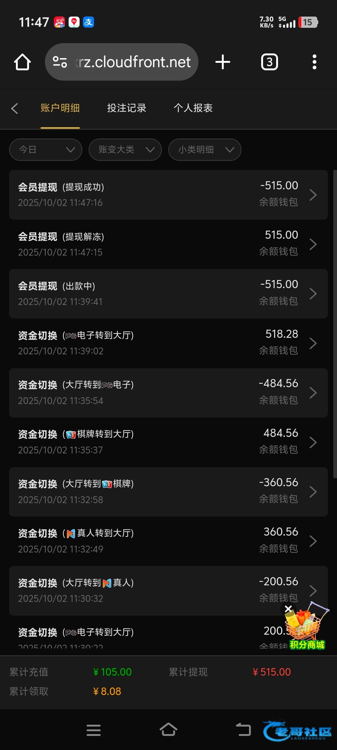 6块打到100。提款让充100。去他妈的吧。一个188要充。一个100还有个300扣了,今天见鬼了